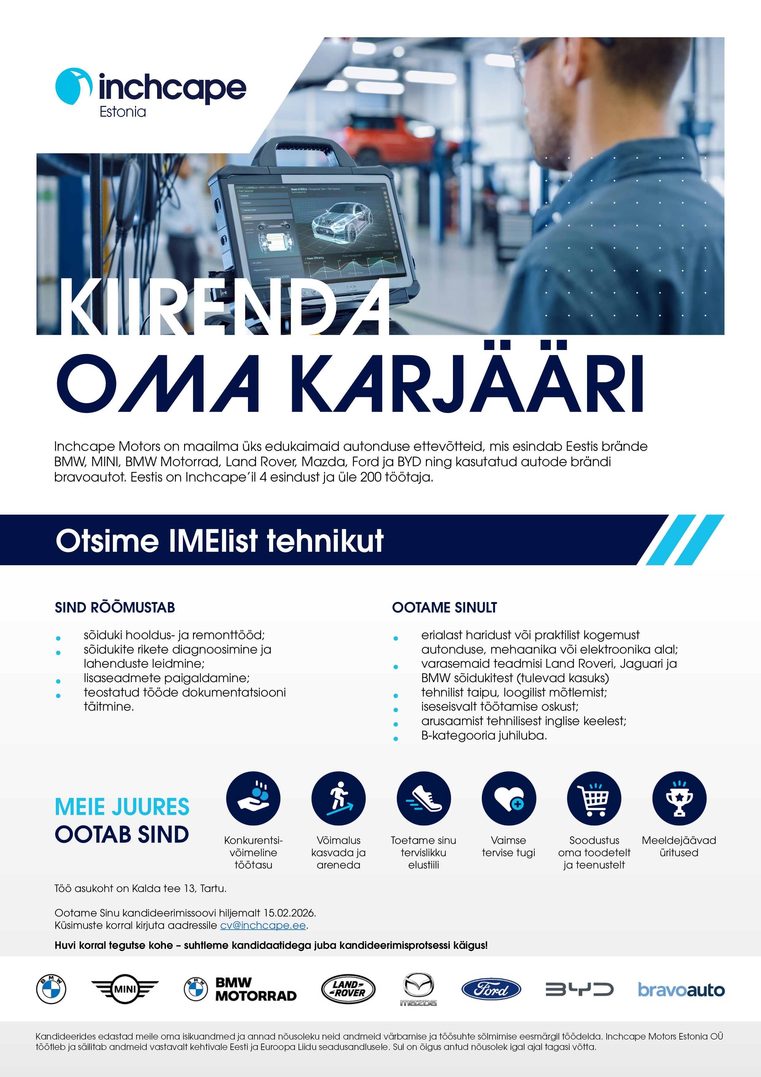Kandideeri hiljemalt 15.02.2026 CV Online kaudu või SIIT https://careers.inchcape.com/job-invite/15528/