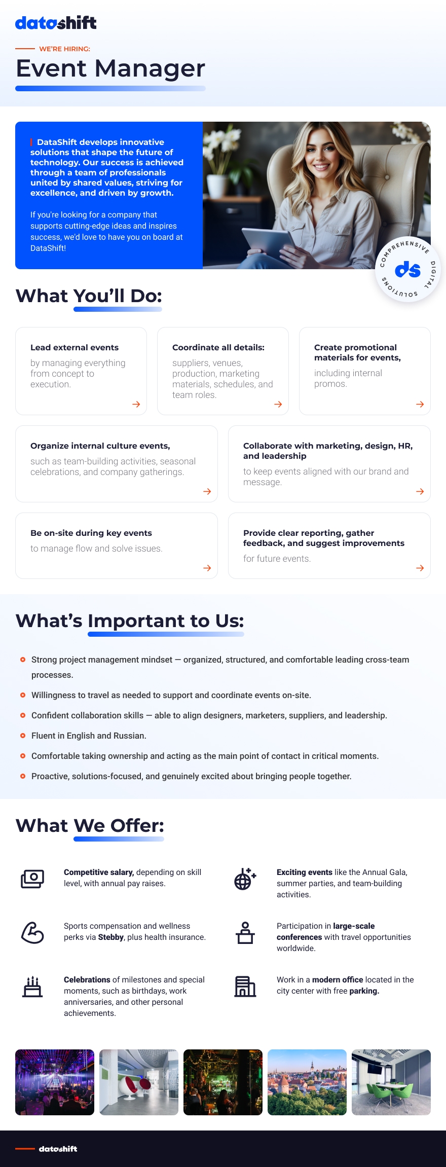 DataShift develops innovative solutions that shape the future of technology. Our success is achieved through a team of professionals united by shared values, striving for excellence, and driven by growth.
