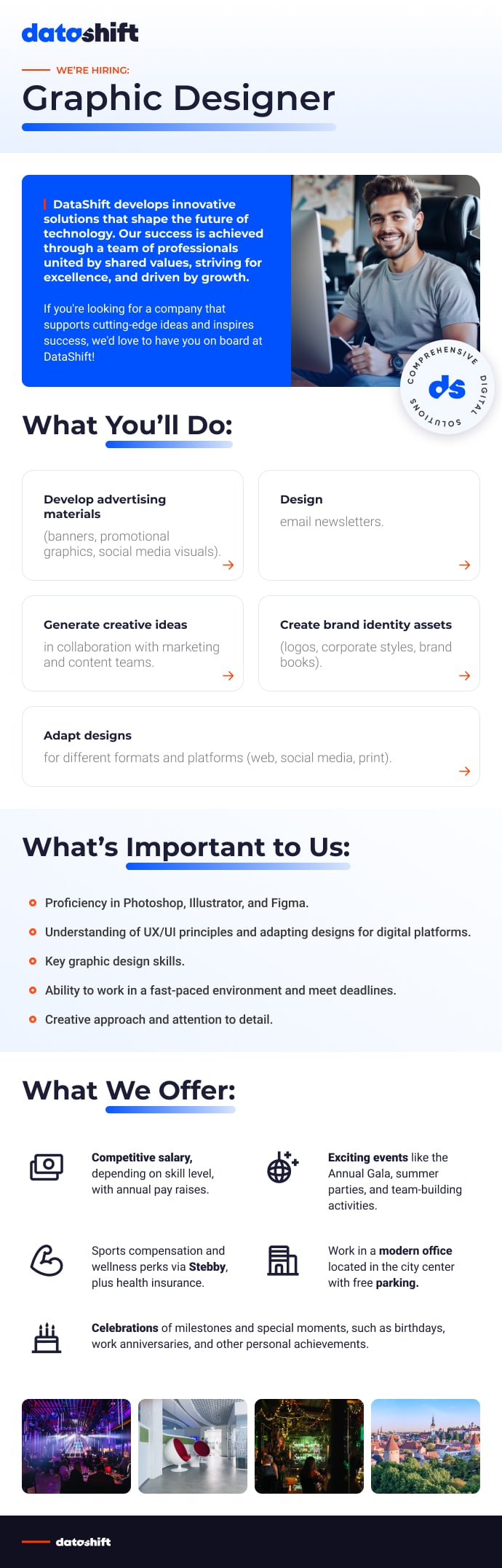 DataShift develops innovative solutions that shape the future of technology. Our success is achieved through a team of professionals united by shared values, striving for excellence, and driven by growth.