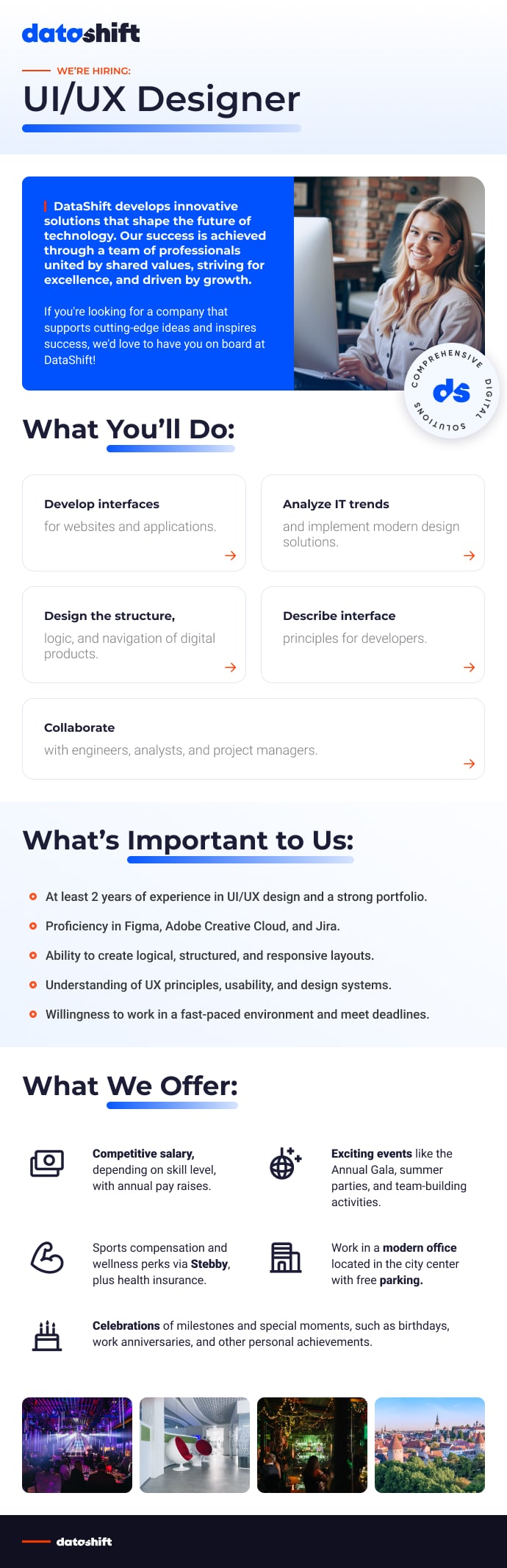 DataShift develops innovative solutions that shape the future of technology. Our success is achieved through a team of professionals united by shared values, striving for excellence, and driven by growth.