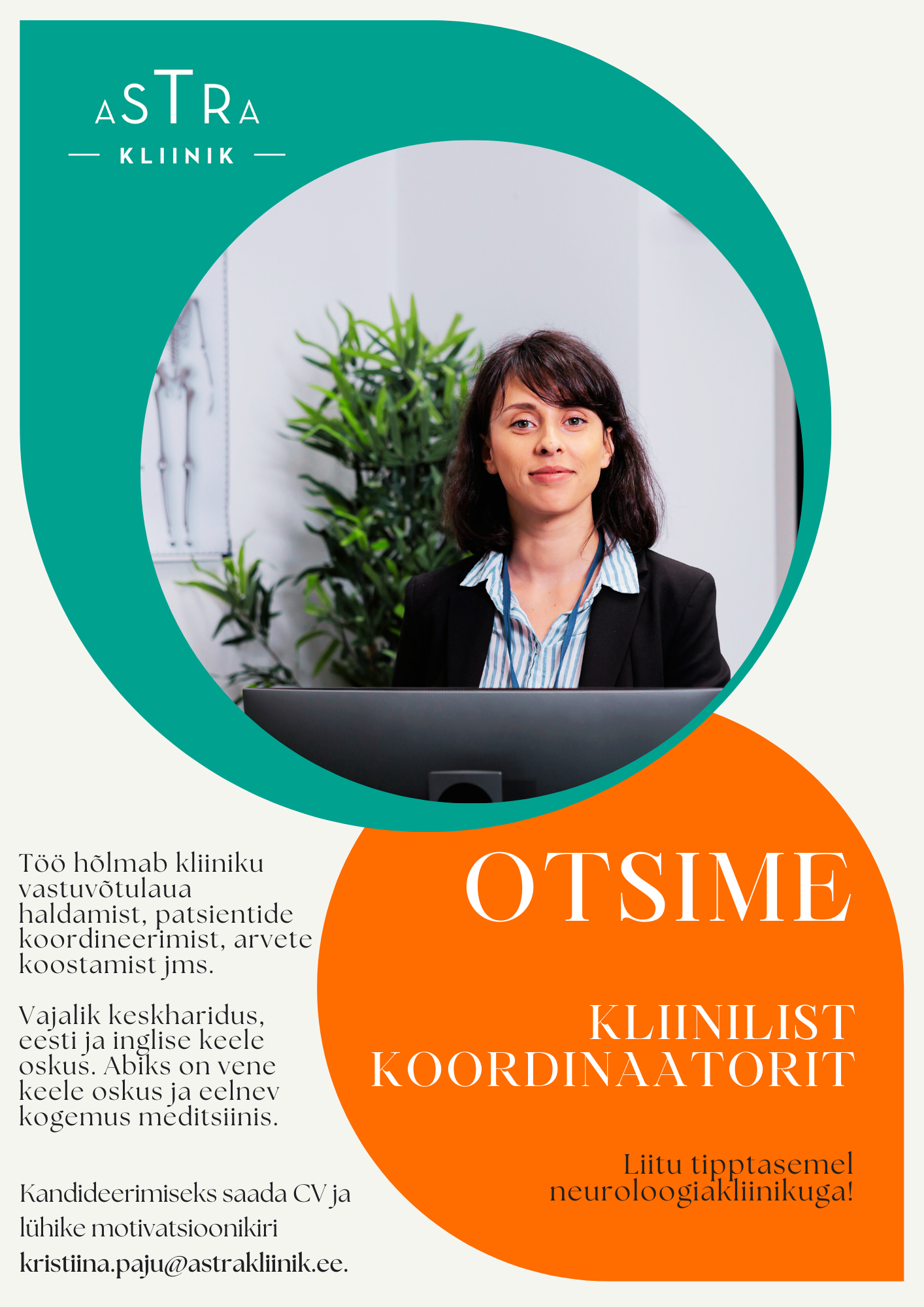 Astra Kliinik on neuroloogiale spetsialiseerunud erakliinik Kotka Tervisemajas. Meie jaoks on oluline pakkuda nii meeskonnale kui ka patsientidele personaalset lähenemist. Usume, et hästi hoitud töötajad hoiavad hästi ka oma patsiente.
