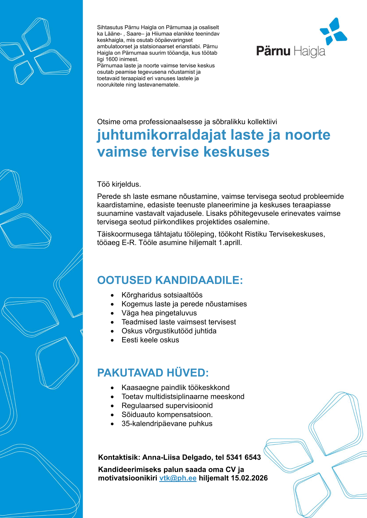 Tööle asumine hiljemalt 1.aprill.