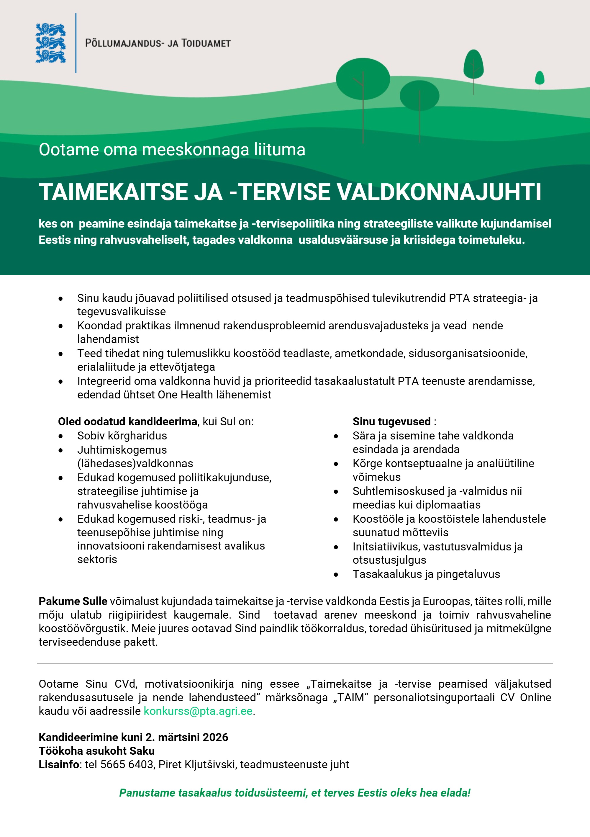 Põllumajandus- ja Toiduamet on Regionaal- ja Põllumajandusministeeriumi valitsemisalas tegutsev valitsusasutus. Põllumajandus- ja Toiduametis kanname hoolt, et Eesti inimeste toidulauale jõuaks ohutu ja tervislik toit, et meie loomade heaolu ja tervis oleksid tagatud, põllud ja taimed hoitud ning et eelnimetatud valdkondades poleks rikkumisi ega pettuseid. Anname oma tegevusega märkimisväärse panuse, et Eestis toodetud toit jõuaks nii Euroopa kui maailmaturgudele ja et meie põllumeeste ja toidutootjate maine oleks usaldusväärne. Teeme tööd selle nimel, et märgata ja määrata riske ja võimalikke rikkumisi varakult ning seeläbi neid pigem ennetada, et üldised arusaamad saaksid paraneda tarbija on teadlikum ja nõudlikum ning tootja kannab oma vastutust paremini. Meie väärtused: ASJATUNDLIK, TOETAV, MÕJUS