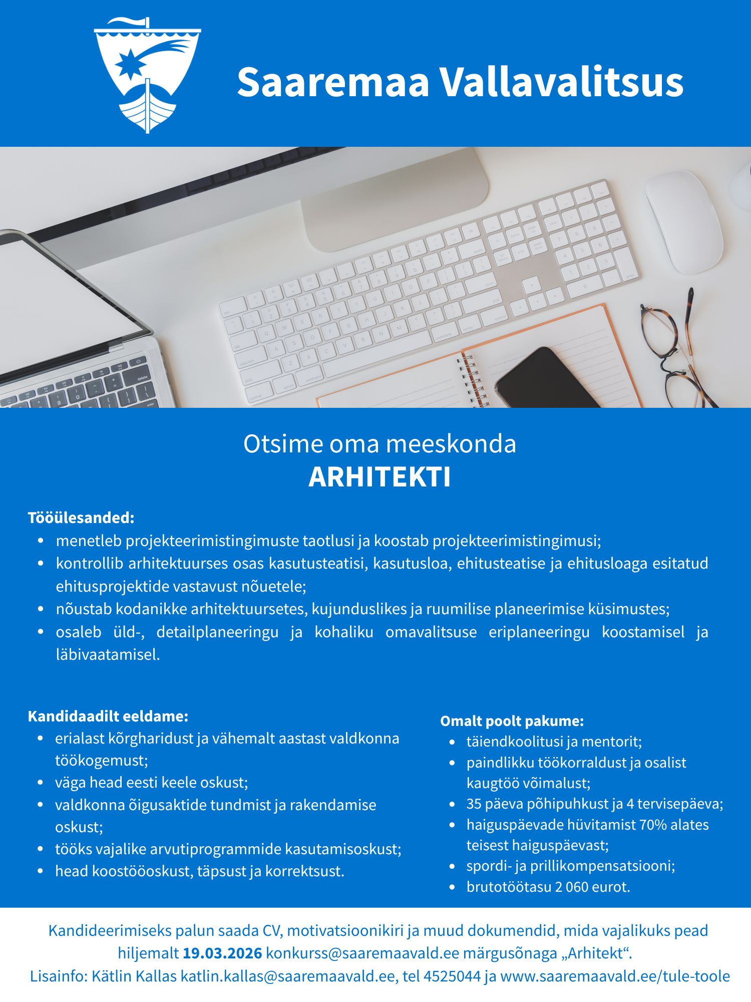 Saaremaa vald on Eesti suurim kohalik omavalitsus. Meiega liitudes annad panuse edendamaks elu Saaremaal. Tule, tee ja saa osa oma tööviljadest, sest iga töölõik on valla kui ka maakonna elu hüvanguks oluline ning tulemus kohe märgata. Anna panus nii Saaremaa Vallavalitsuse kui ka Saaremaa elanike heaks!