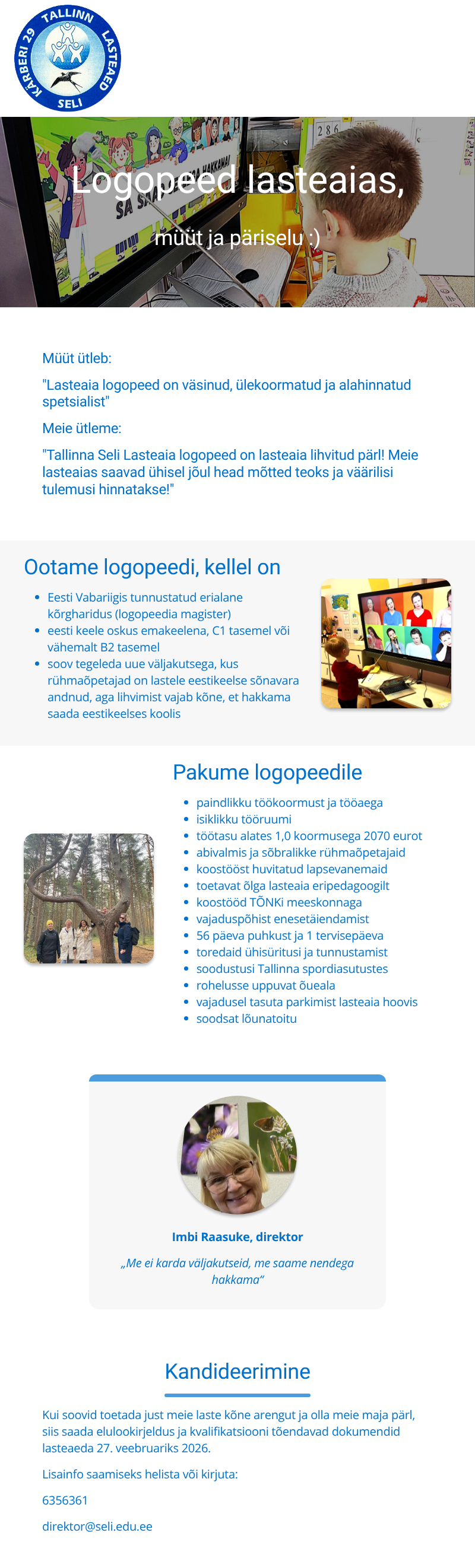 Lasnamäe servas Pirita jõe kaldal asuv Tallinna Seli Lasteaed on kogukonnas hinnatud eestikeelsele õppele ülemineku lasteaed, kus head mõtted saavad koostöös teoks ja vääriliselt hinnatud.