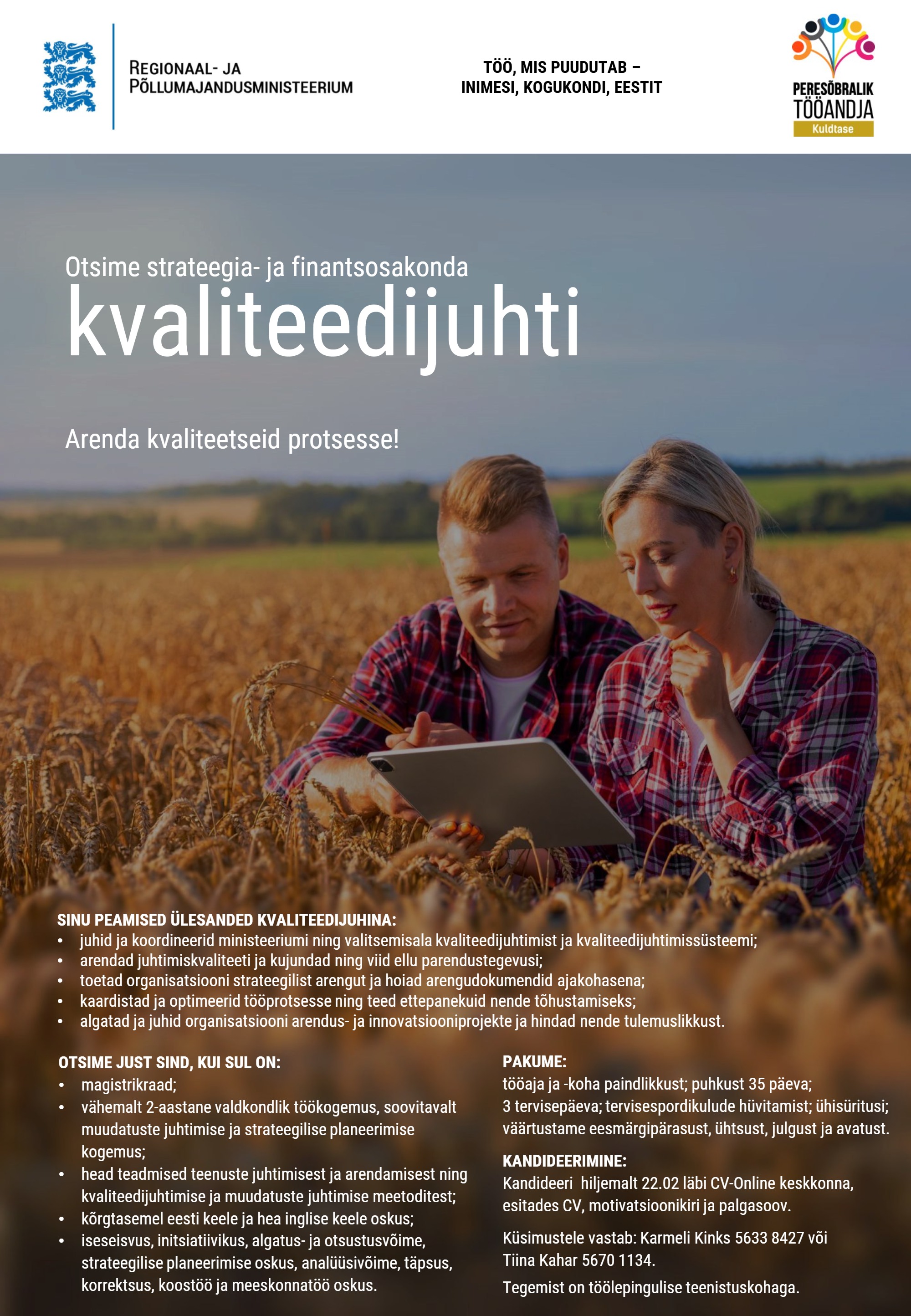 Regionaal- ja Põllumajandusministeerium on valitsuse asjatundja regionaalarengu, maaelu-, põllumajandus- ja kalanduspoliitika kavandamisel ja elluviimisel.