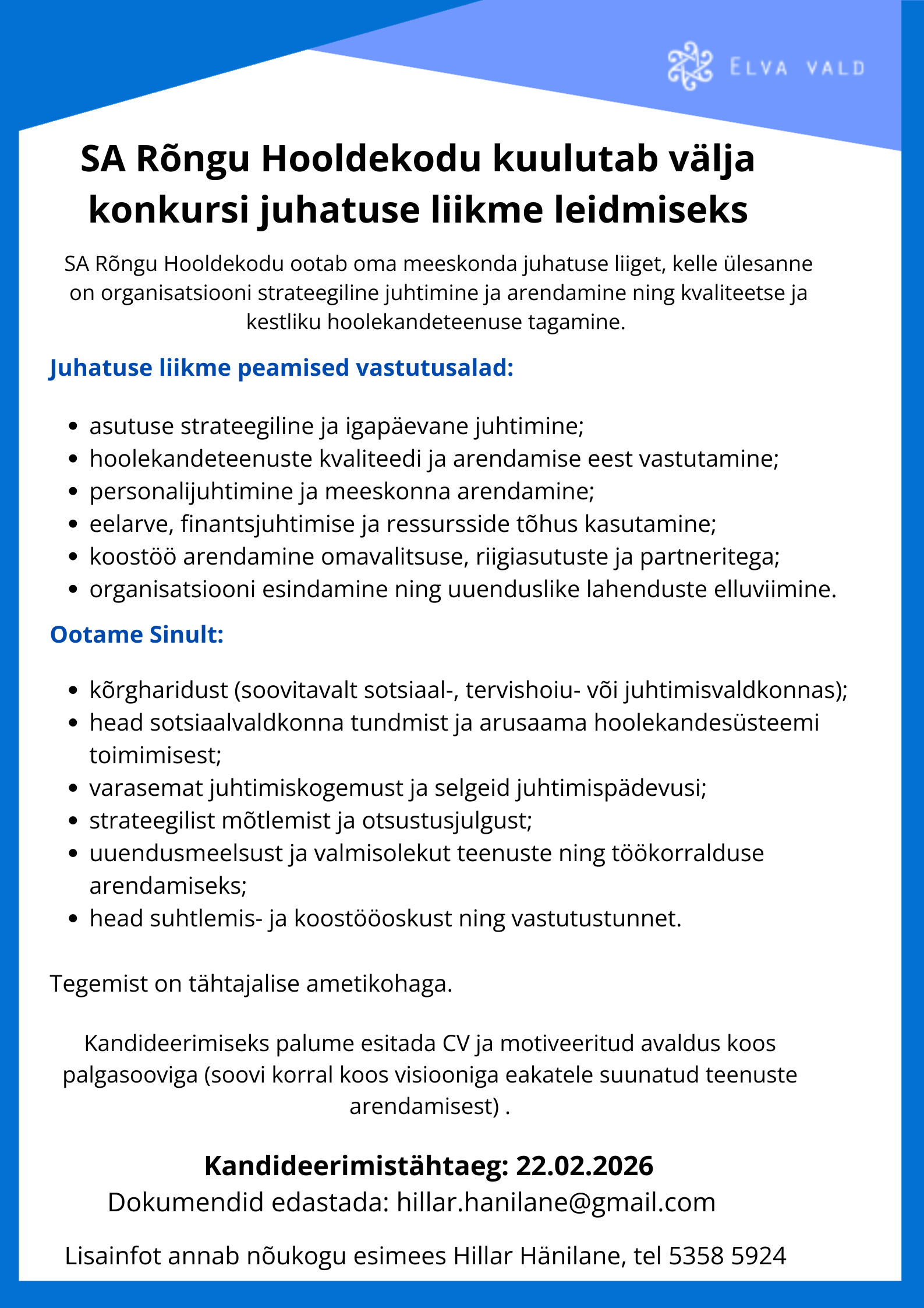 3. varasemat juhtimiskogemust ja selgeid juhtimispädevusi;