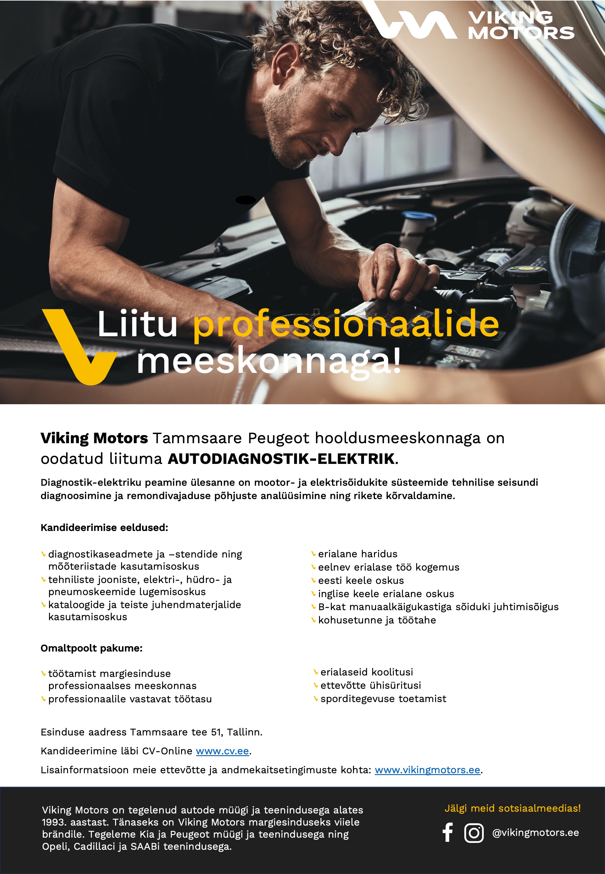 - diagnostikaseadmete ja –stendide ning mõõteriistade kasutamisoskus