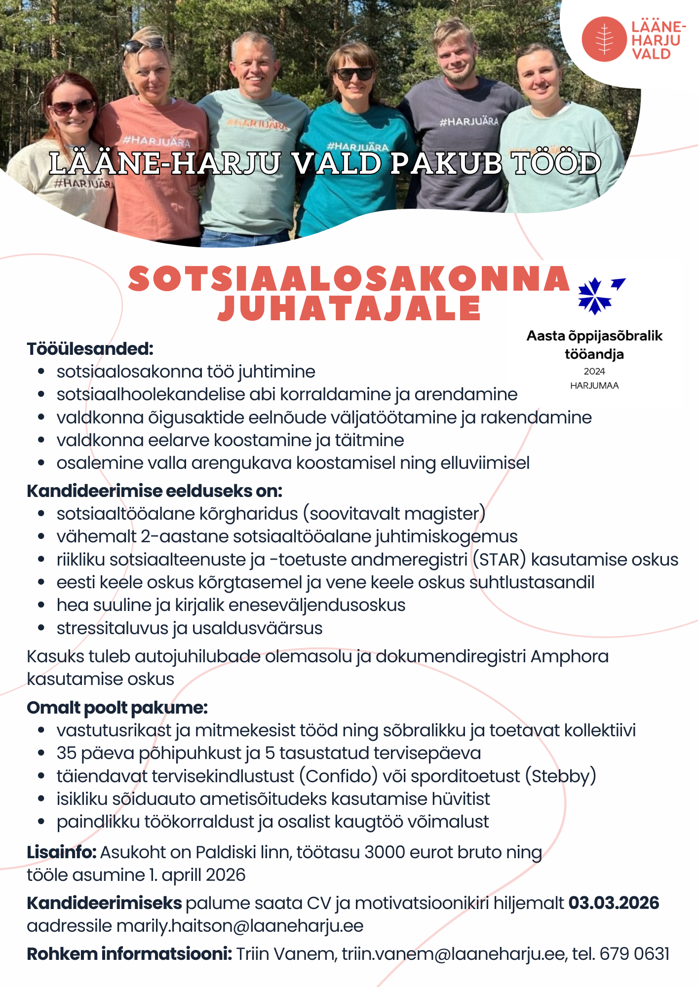 Lisahüved: • 35 päeva põhipuhkust ja 5 tasustatud tervisepäeva aastas; • täiendav tervisekindlustus (Confido) või sporditoetus (Stebby).