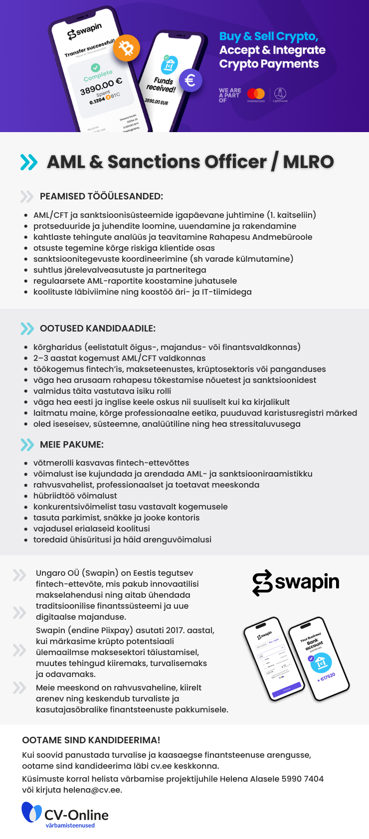 Ungaro OÜ (Swapin) on Eestis tegutsev fintechettevõte, mis pakub innovaatilisi makselahendusi ning aitab ühendada traditsioonilise finantssüsteemi ja uue digitaalse majanduse. Swapin (endine Piixpay) asutati 2017. aastal, kui märkasime krüpto potentsiaali ülemaailmse maksesektori täiustamisel, muutes tehingud kiiremaks, turvalisemaks ja odavamaks. Meie meeskond on rahvusvaheline, kiirelt arenev ning keskendub turvaliste ja kasutajasõbralike finantsteenuste pakkumisele.