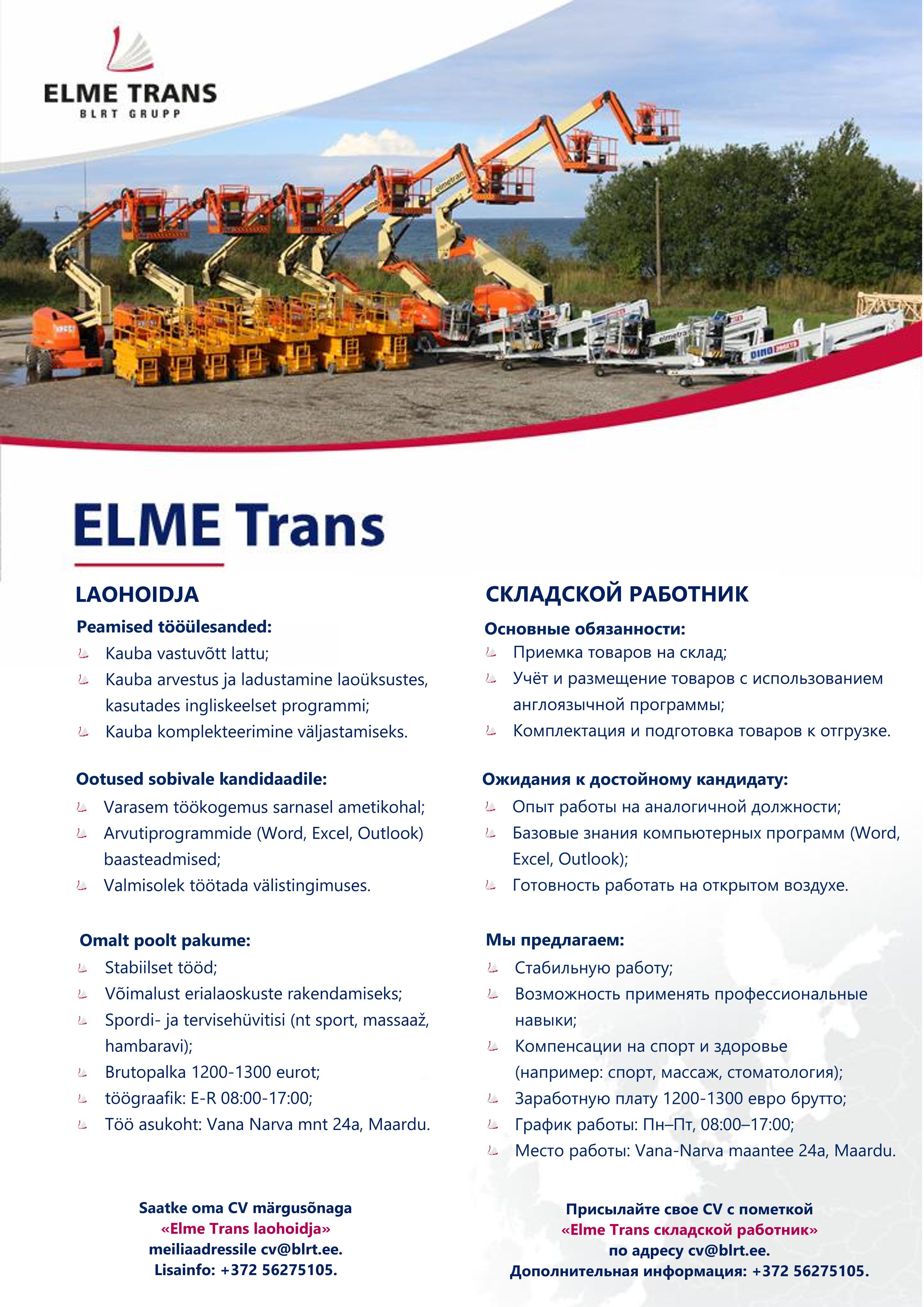 Оператор склада / Laooperaator