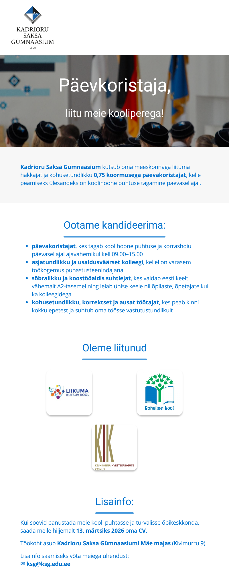 Selle ametikoha keskmise palga info leiad aadressilt palgad.ee.