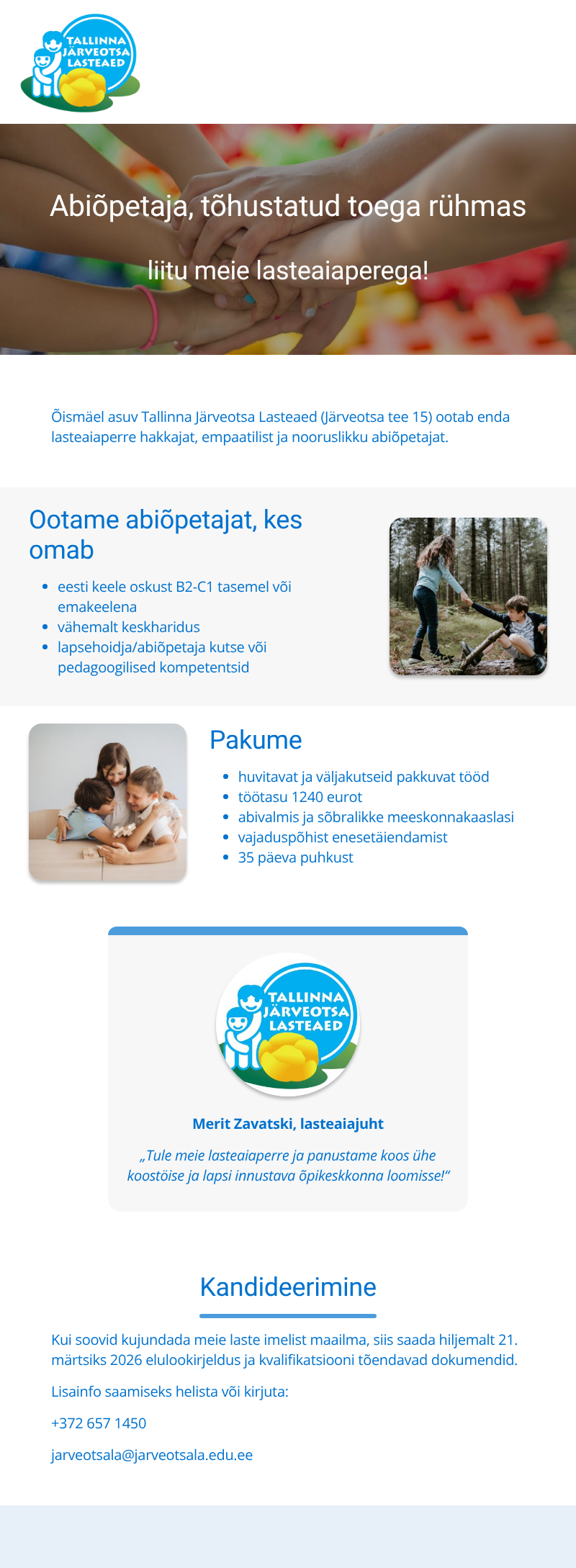 Tallinna Lasteaed Kraavikrõll abiõpetaja