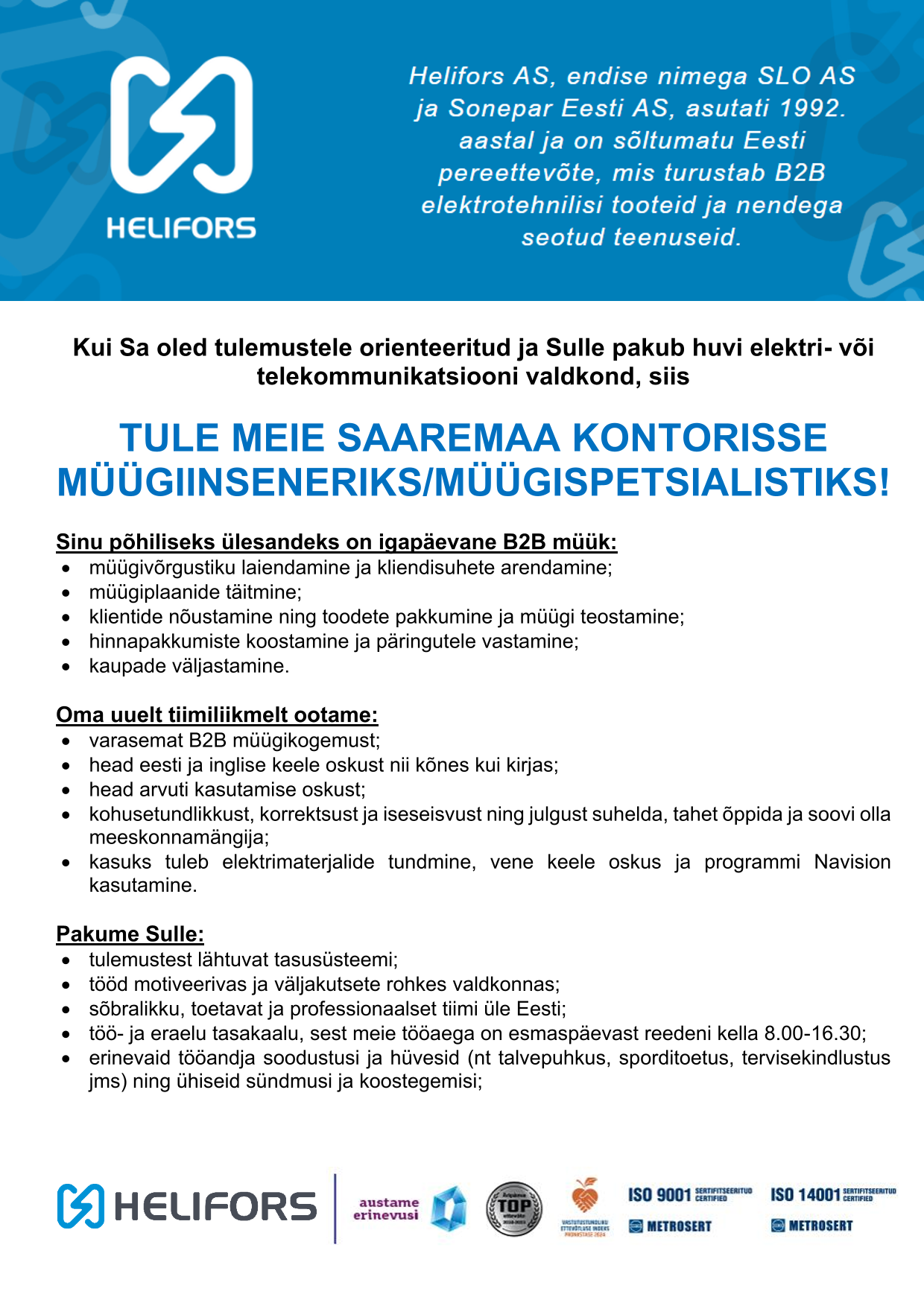 Helifors AS (endise nimega SLO AS ja Sonepar Eesti AS) asutati 1992. aastal ja on sõltumatu Eesti pereettevõte, mis turustab B2B elektrotehnilisi tooteid ja nendega seotud teenuseid.