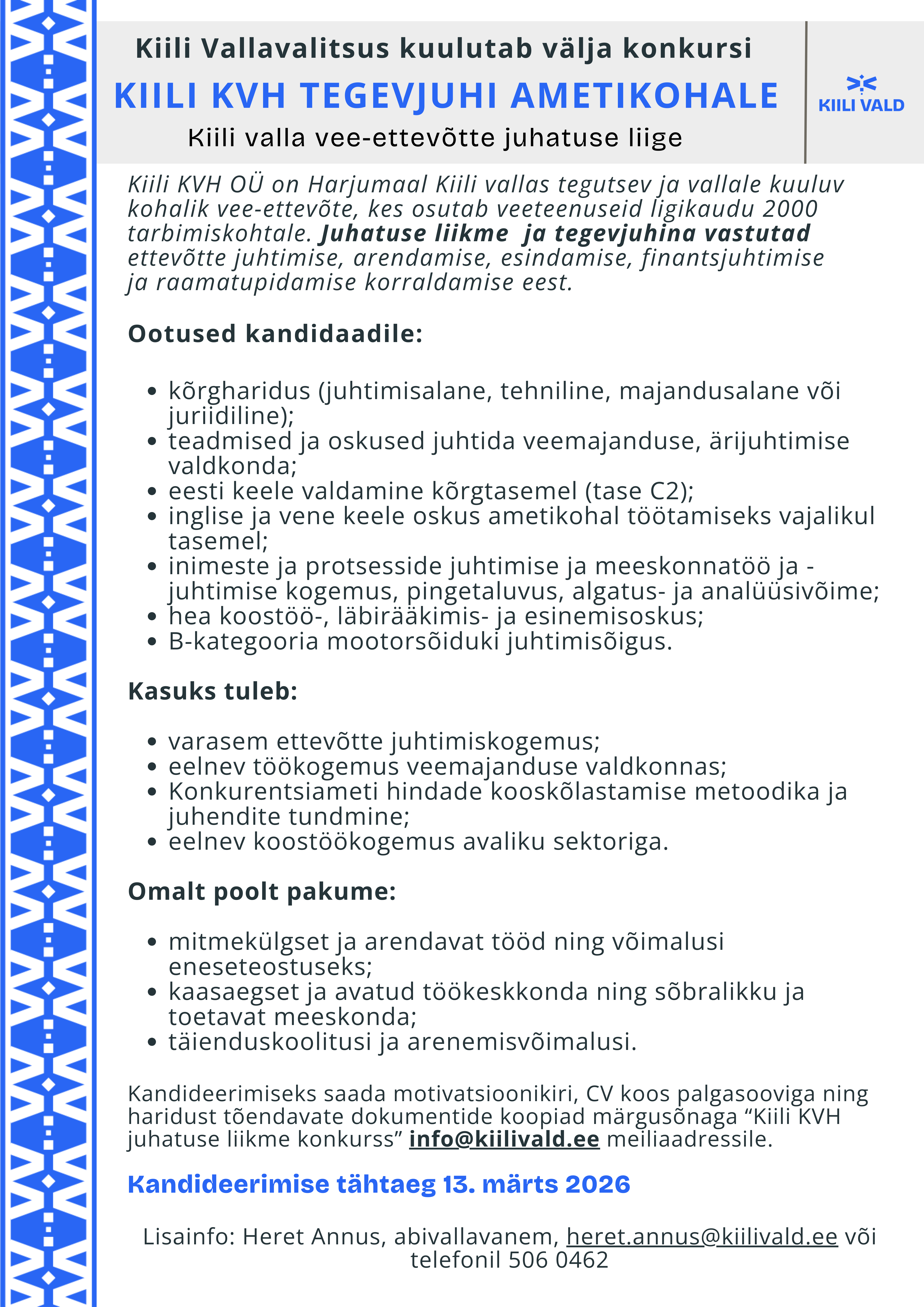 Kiili KVH OÜ on 100% Kiili vallale kuuluv võrgustikuettevõte, mille põhitegevusalaks on reguleeritud ühisvee- ja kanalisatsiooniteenuse (edaspidi ÜVK) ning sellega seotud lisateenuste osutamine Kiili ja osaliselt Rae vallas.