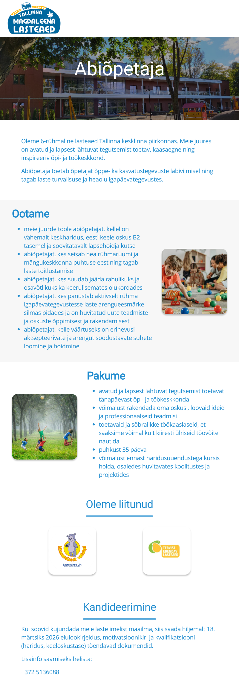 Eritoega väiksema rühma õpetaja