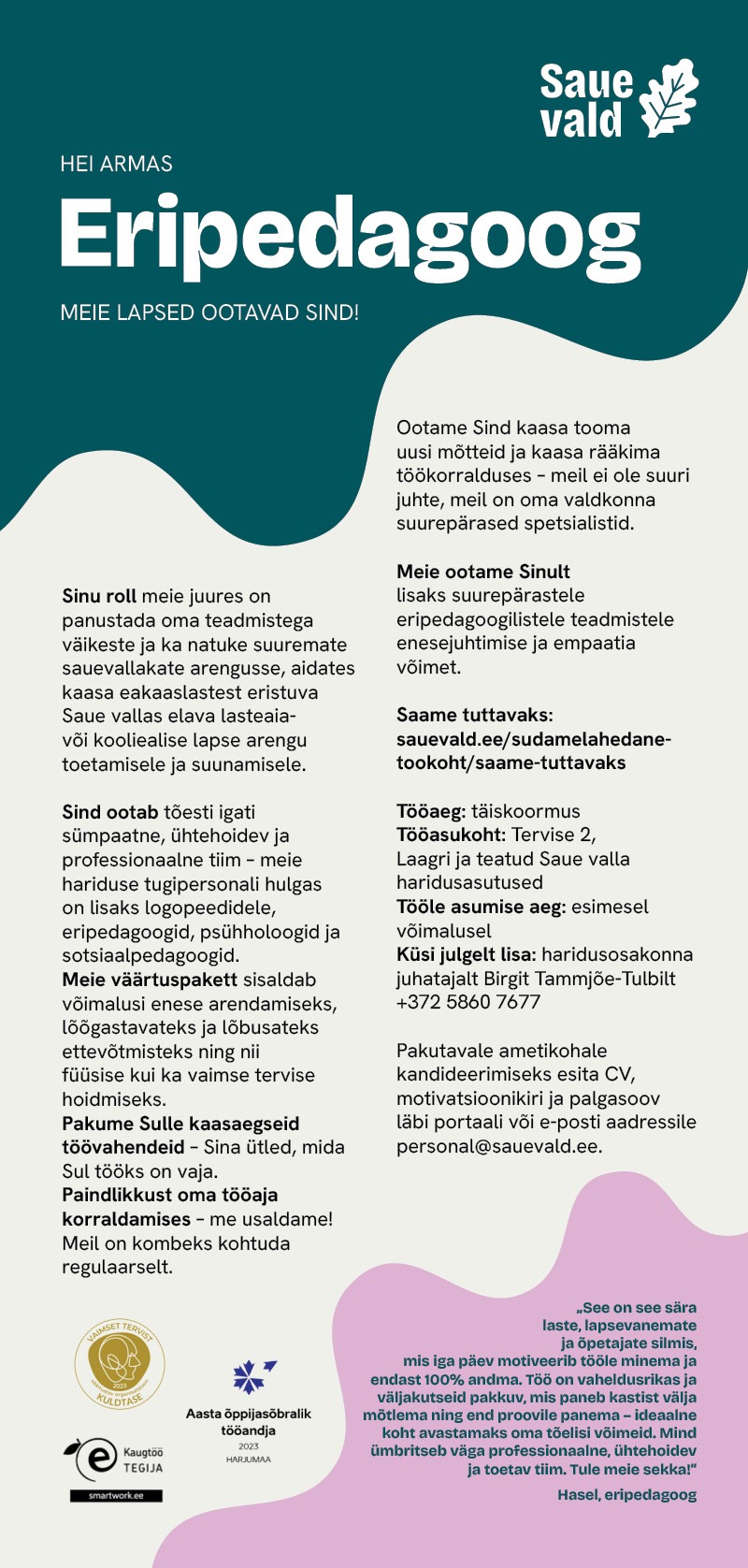 Hoiame oma joont, maad ja inimesi. Siin on ilus elada, õppida ja töötada.