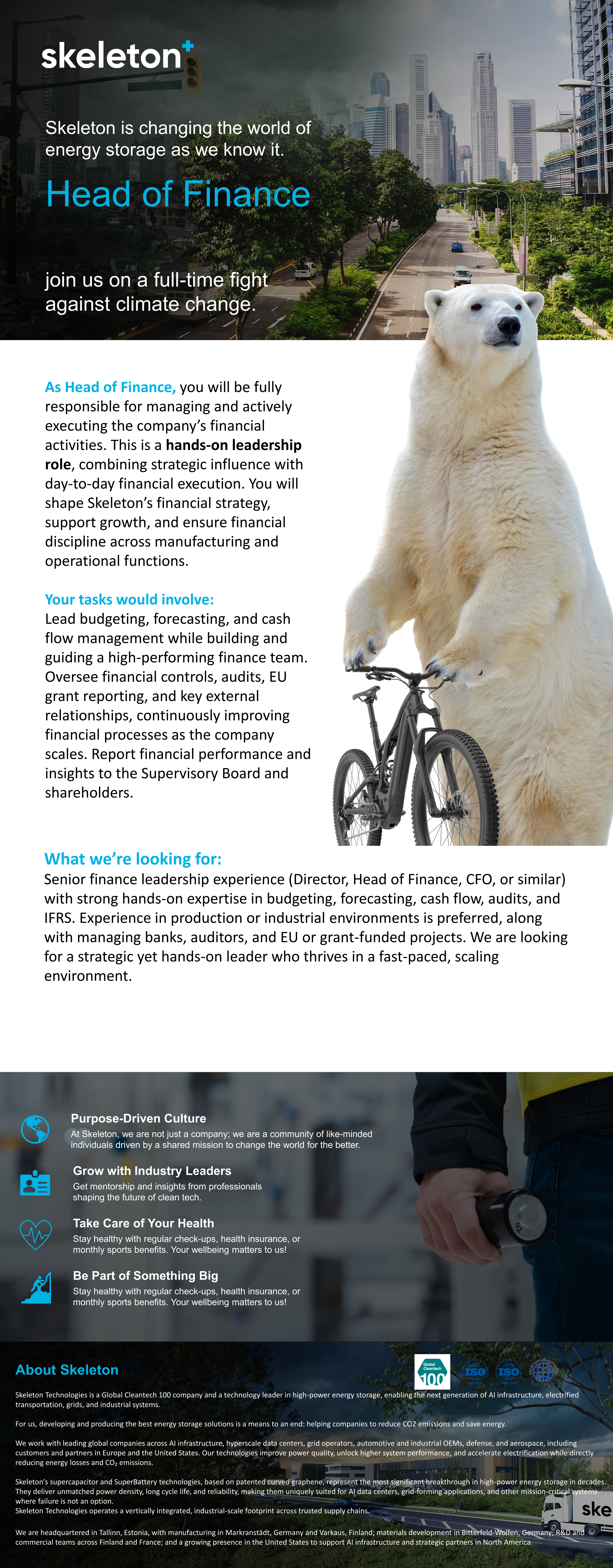 Skeleton Technologies is a Global Cleantech 100 company and a technology leader in high-power energy storage, enabling the next generation of AI infrastructure, electrified transportation, grids, and industrial systems.
