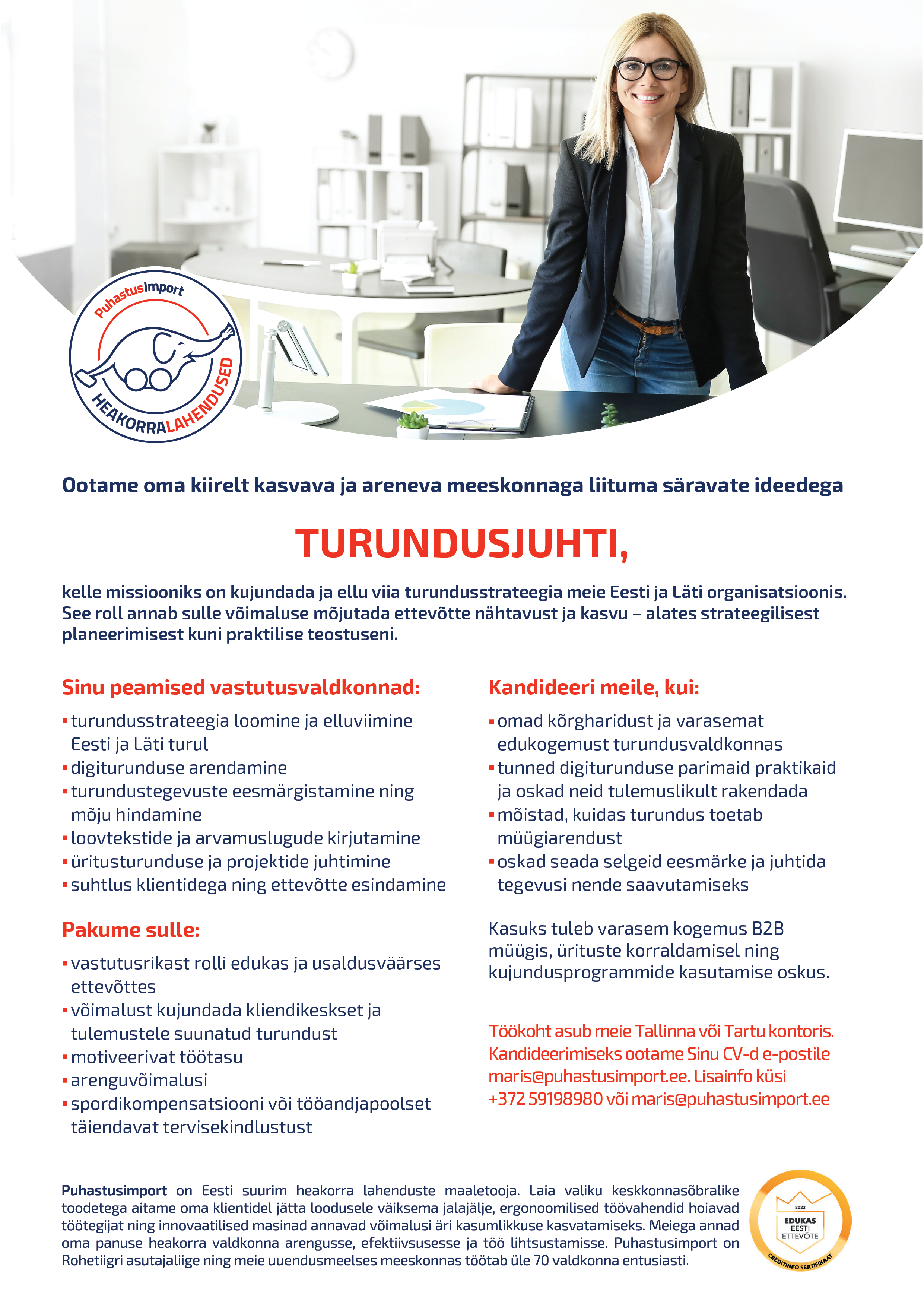 Puhastusimport on Eesti suurim kinnisvarahoolduse ja puhastusvahendite terviklahenduste pakkuja! Asutatud 1994. aastal. Puhastusimport on kasvanud hinnatud kompetentsikeskuseks ning esindab Eestis üle kahekümne tuntud koristustarvikute, puhastusainete ja masinate kaubamärgi.