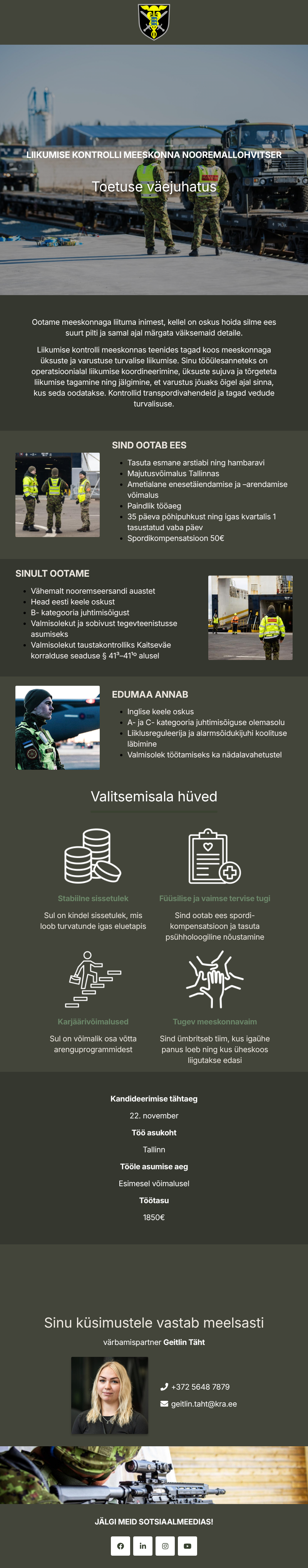 Liikumis- ja veoteenistuse põhiülesanne on kaitseväe ning vastuvõtva riigi toetuse raames liitlasüksuste liikumiste ja vedude korraldamine.