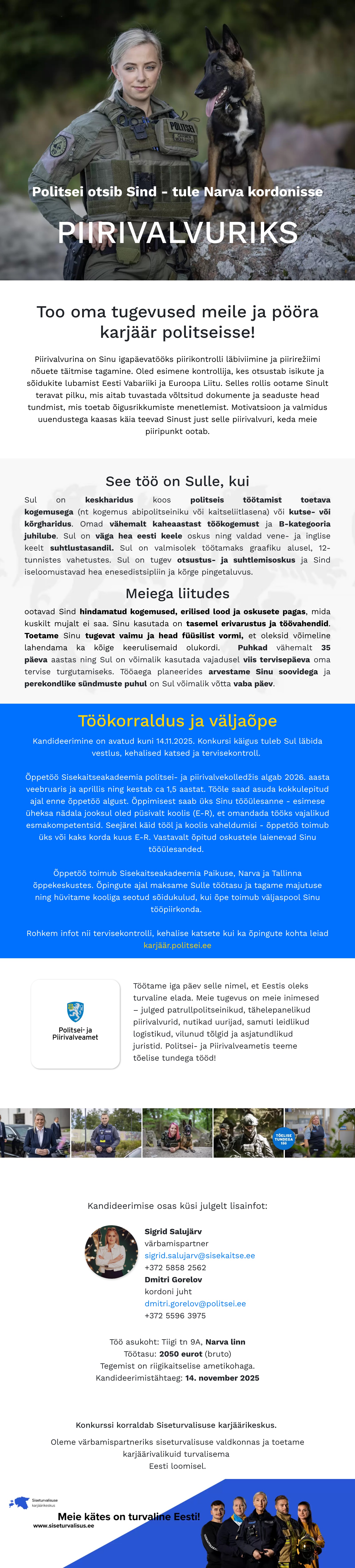 Pööra karjäär Narva piiripunkti piirivalvuriks