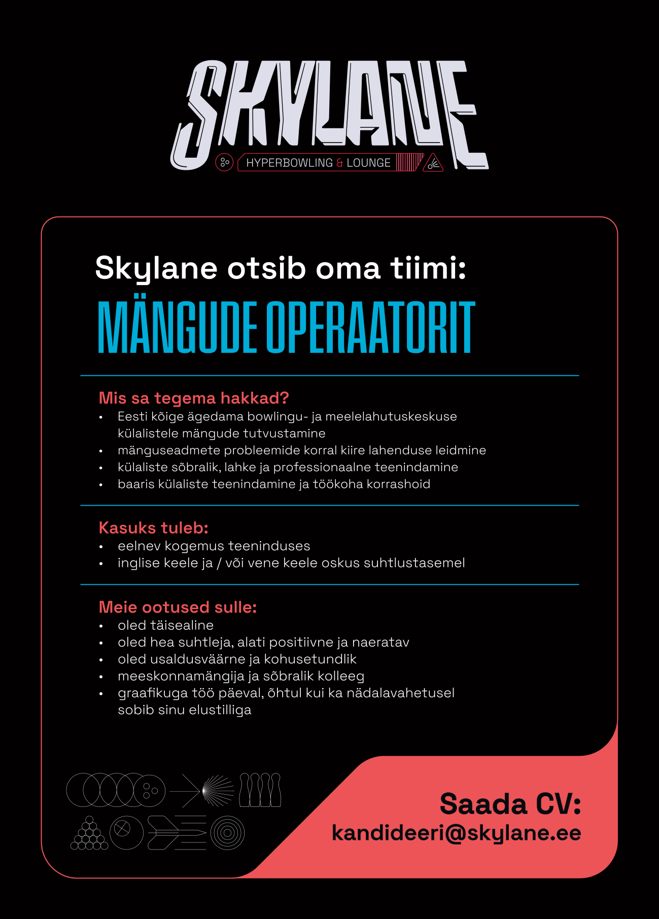 Skylane: Eestis ainulaadne bowlingu- ja meelelahtuskeskus. Eesti ainuke HyperBowling. Skylane´is pakutav ei piirdu bowlinguga, sest keskuses on kolm tipptasemel piljardilauda, neli shuffleboardi lauda, neli tipptasemel noolemängu ning palju elektroonilisi meelelahutusmänge.
