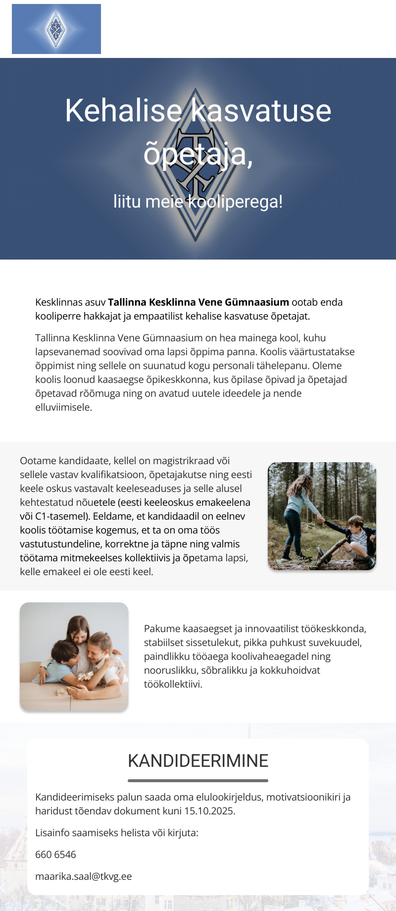 Tallinna Kesklinna Vene Gümnaasium on hea mainega kool, kuhu lapsevanemad soovivad oma lapsi õppima panna. Koolis väärtustatakse õppimist ning sellele on suunatud kogu personali tähelepanu. Oleme koolis loonud kaasaegse õpikeskkonna, kus õpilase õpivad ja õpetajad õpetavad rõõmuga ning on avatud uutele ideedele ja nende elluviimisele.