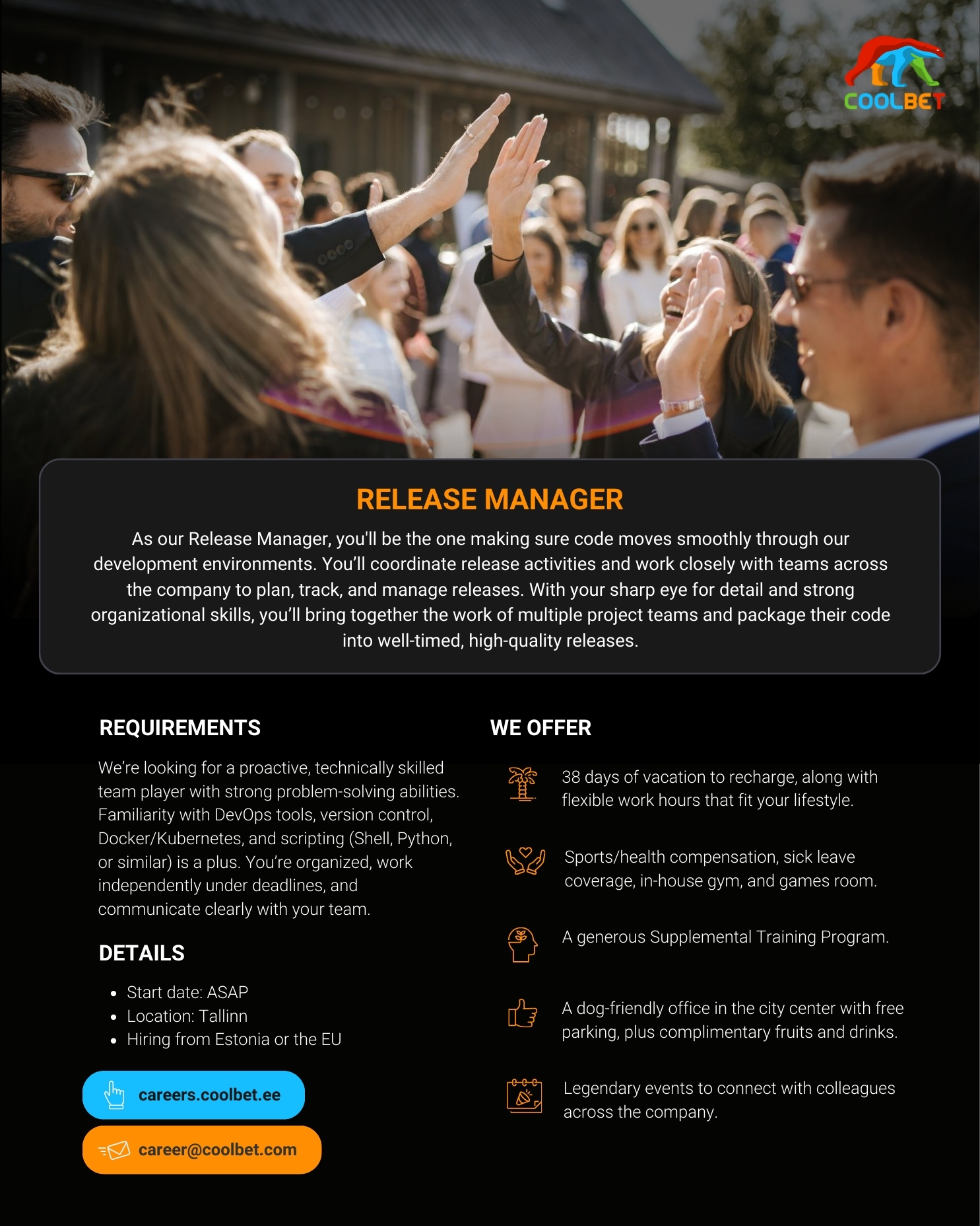 And the best part? We're growing fast and looking for new talent to join our team! Whether you're a seasoned pro or just starting out, we've got opportunities for everyone. So why not take a chance to apply now to take part in our new adventure and discover why Coolbet is the place to be? With our unique blend of innovation, responsibility, and fun, you'll never want to leave.