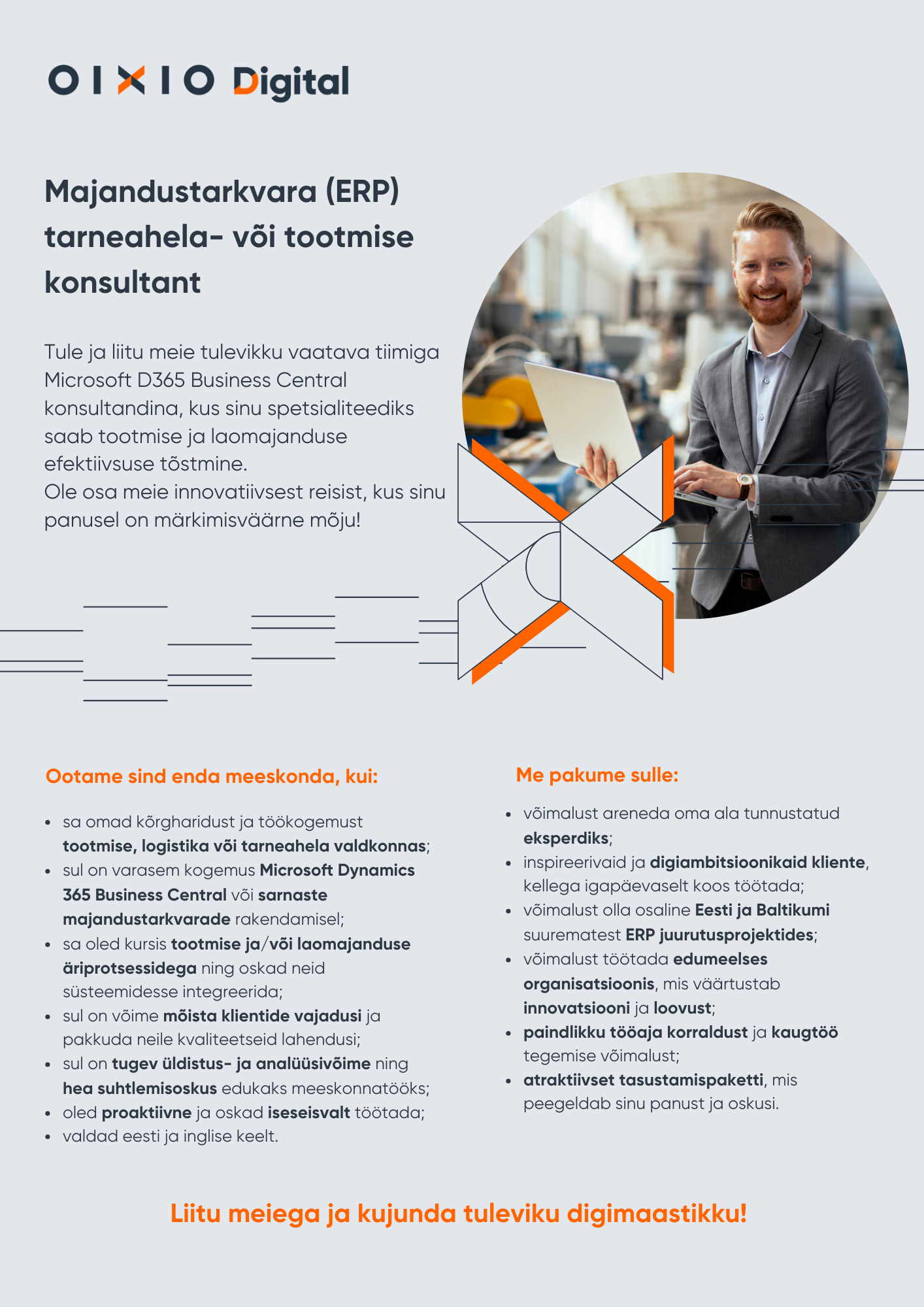 OIXIO Digitali kõige olulisem vara on meie inimesed, kes teevad oma tööd südamega. Uued väljakutsed on need, mis meid käivitavad ja seeläbi annavad võimaluse korda saata midagi olulist. Lisaks mõtleme alati, kas on võimalik teha asju paremini, alati ootuseid ületades ja mitte leppides keskpärasusega.