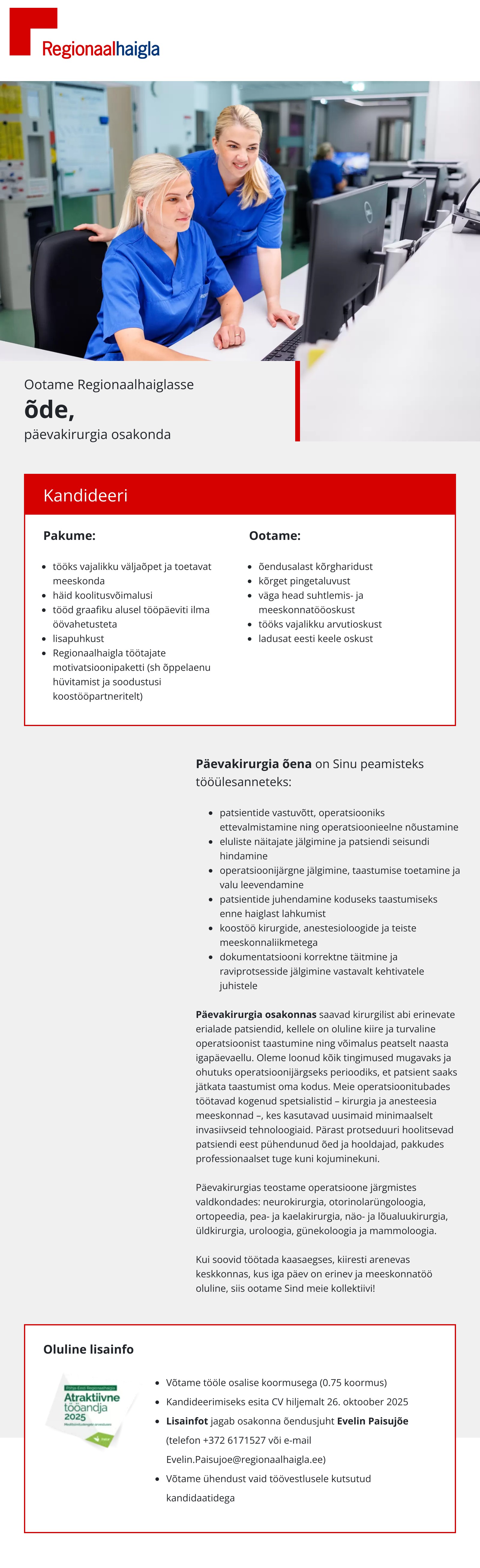 Selle ametikoha keskmise palga info leiad aadressilt palgad.ee.
