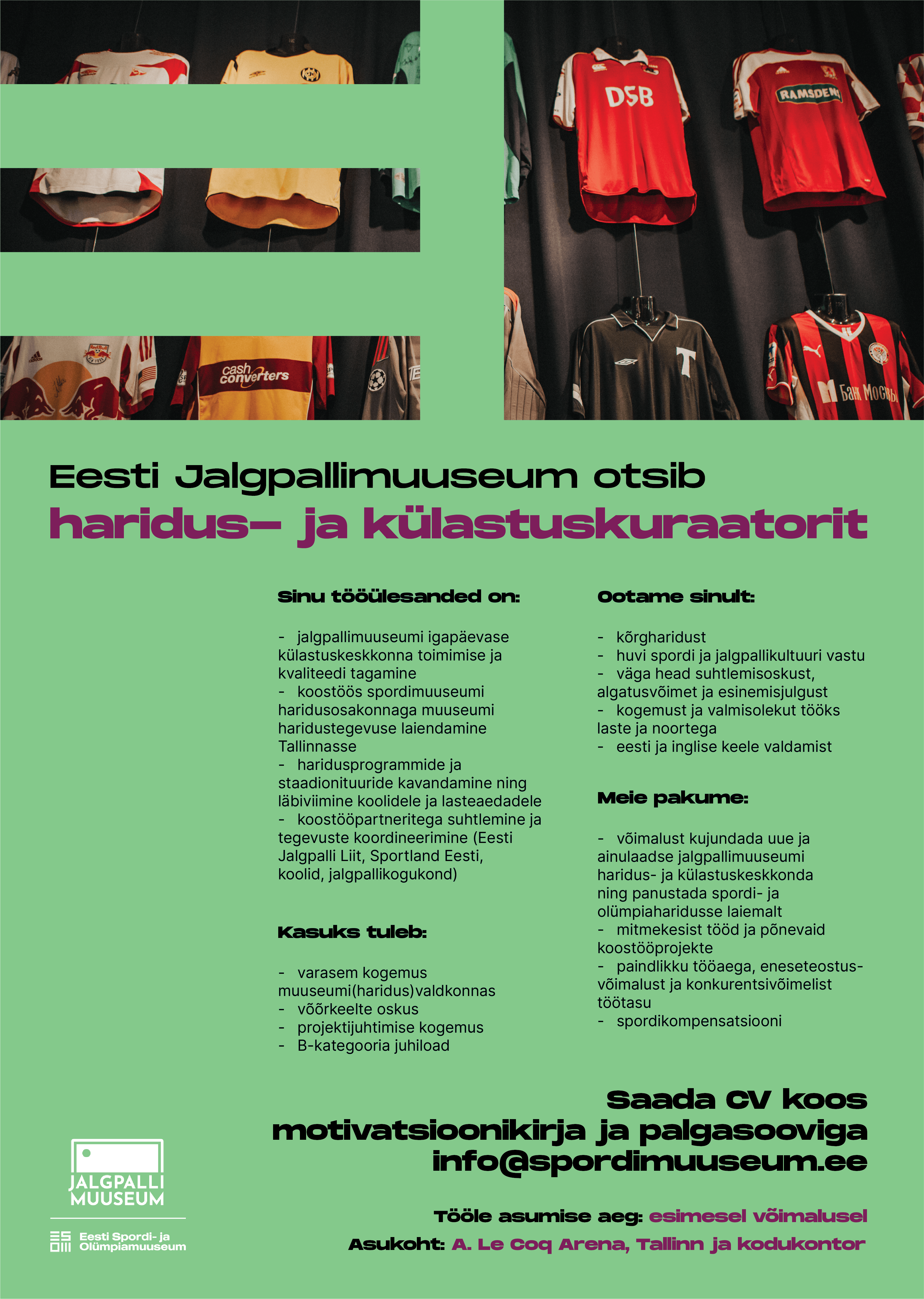 - jalgpallimuuseumi igapäevase külastuskeskkonna toimimise ja kvaliteedi tagamine