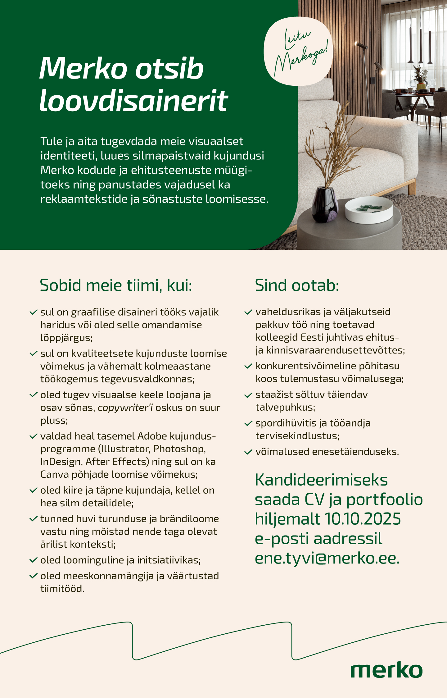 Merko Eesti ettevõtetes Merko Ehitus Eesti ja Merko Kodud töötab üle 300 inimese,