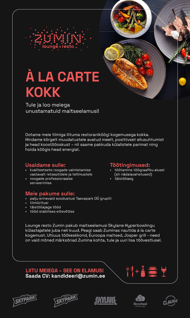 - Zumin on avatud E-N 12-22, R 12-23, L 10-23 ja P 10-22. Koka tööpäevad algavad tund enne avamist ja lõppevad poolt tundi peale sulgemist. Erisündmuste korral võib ette tulla töögraafikus erinevusi eelnimetatud kellaaegades.