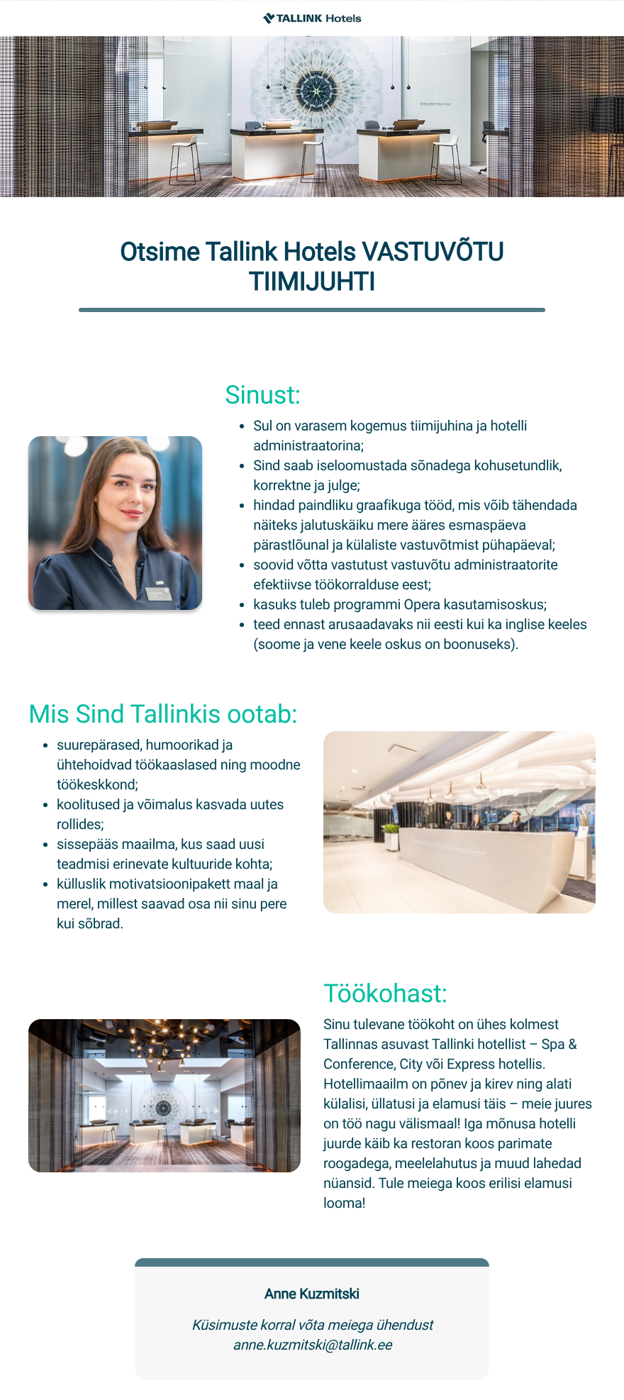 Võimalusi kaasa mõelda, ära teha ja koos ettevõttega areneda on väga palju.