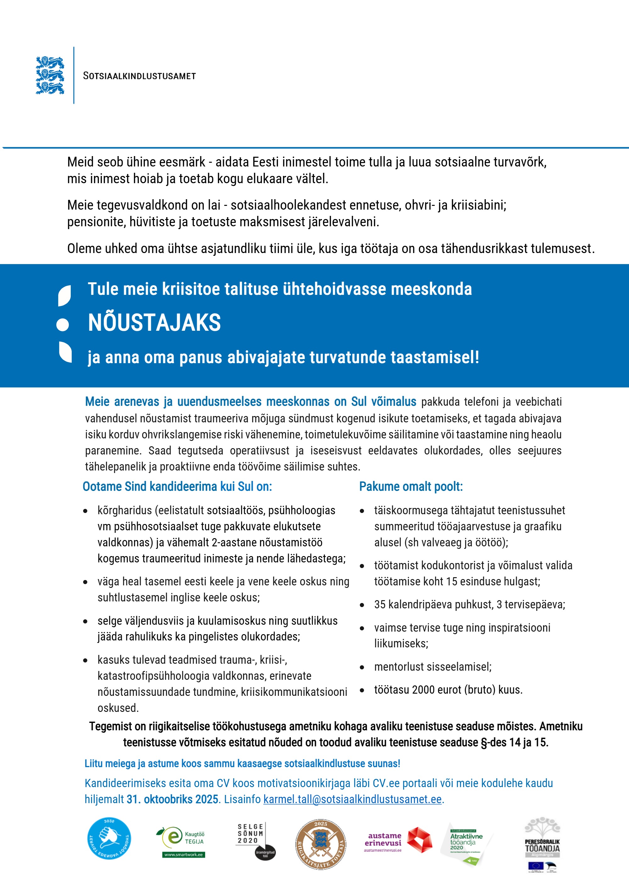 Meid seob ühine eesmärk - aidata Eesti inimestel toime tulla ja luua sotsiaalne turvavõrk,