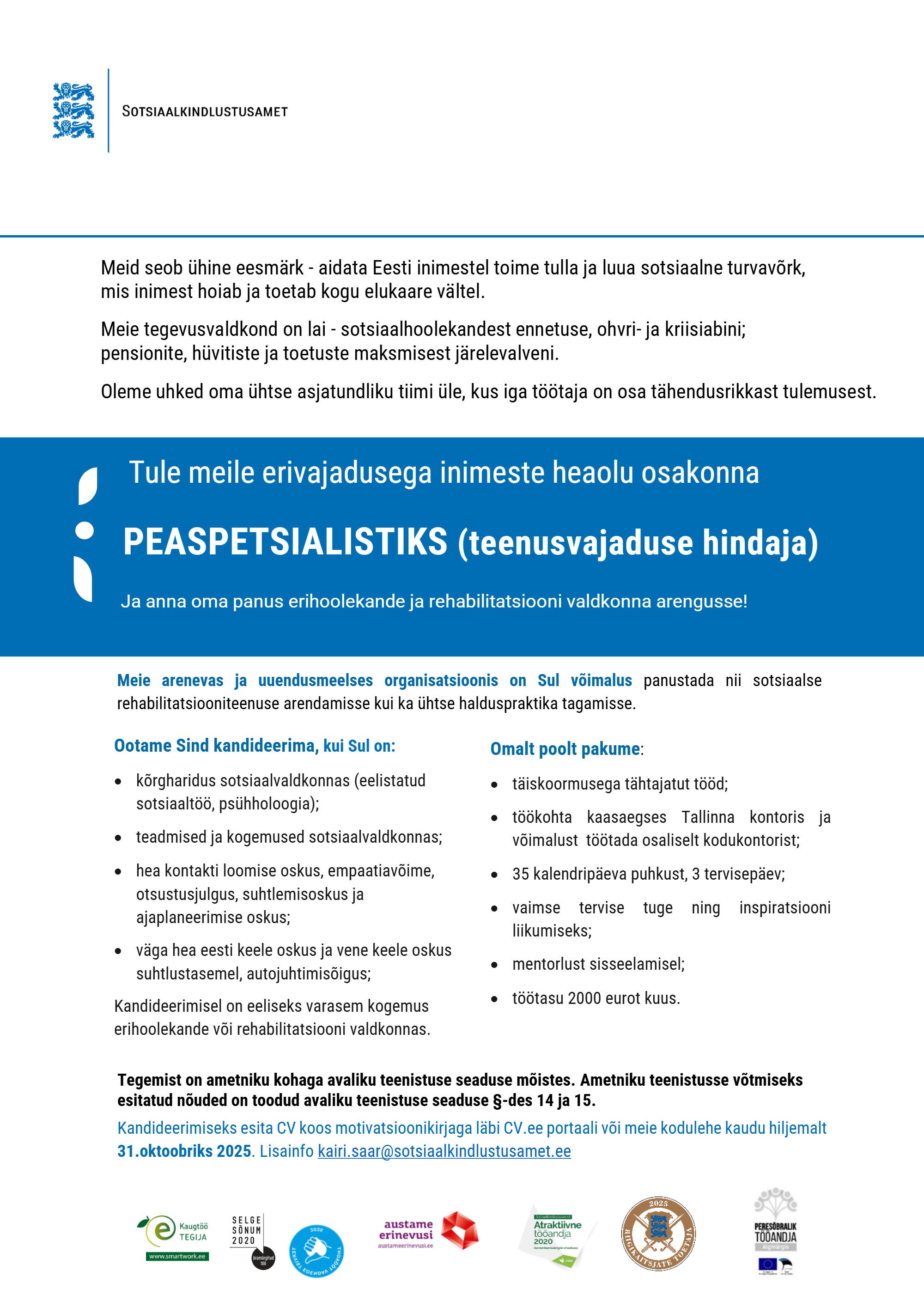 Meid seob ühine eesmärk - aidata Eesti inimestel toime tulla ja luua sotsiaalne turvavõrk,