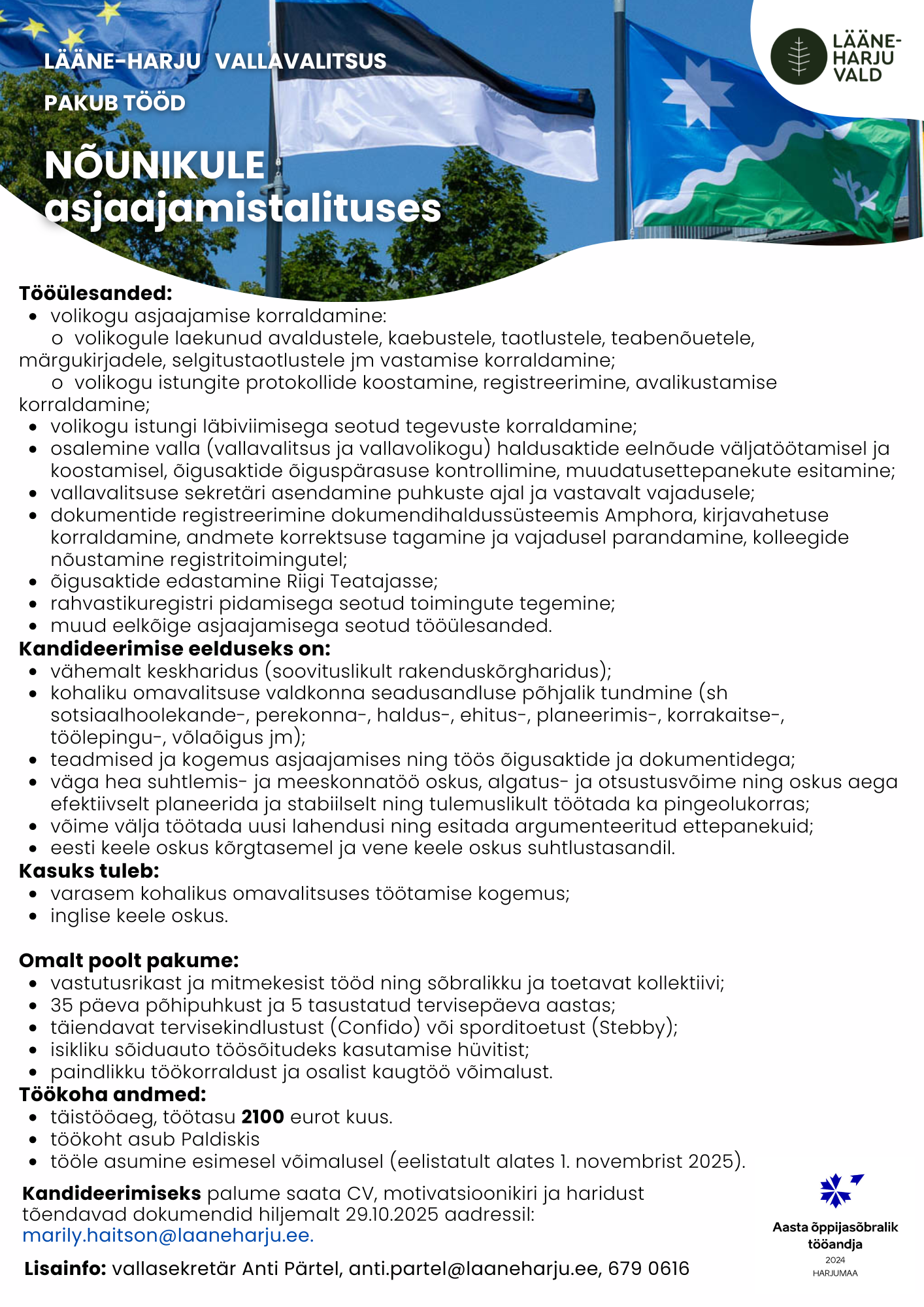 Lisahüved: Täiendav tervisekindlustus (Confido) või sporditoetus (Stebby); 35 päeva põhipuhkust ja 5 tasustatud tervisepäeva; isikliku sõiduauto töösõitudel kasutamise hüvitis; paindlik töökorraldus ja osaline kaugtöö võimalus.