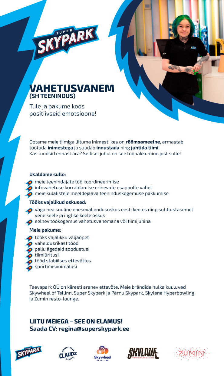 - eelnev töökogemus vahetusvanemana või tiimijuhina