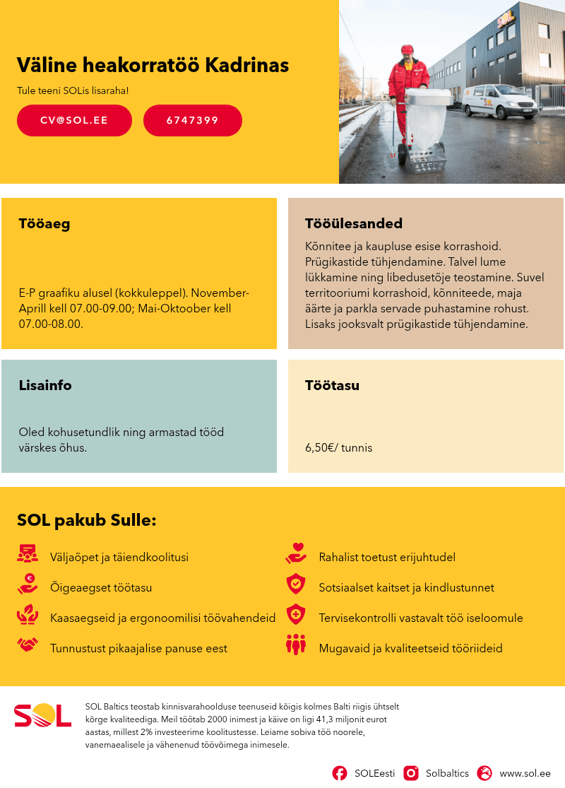 SOL Baltics teostab kinnisvarahoolduse teenuseid kõigis kolmes Balti riigis ühtselt kõrge kvaliteediga.