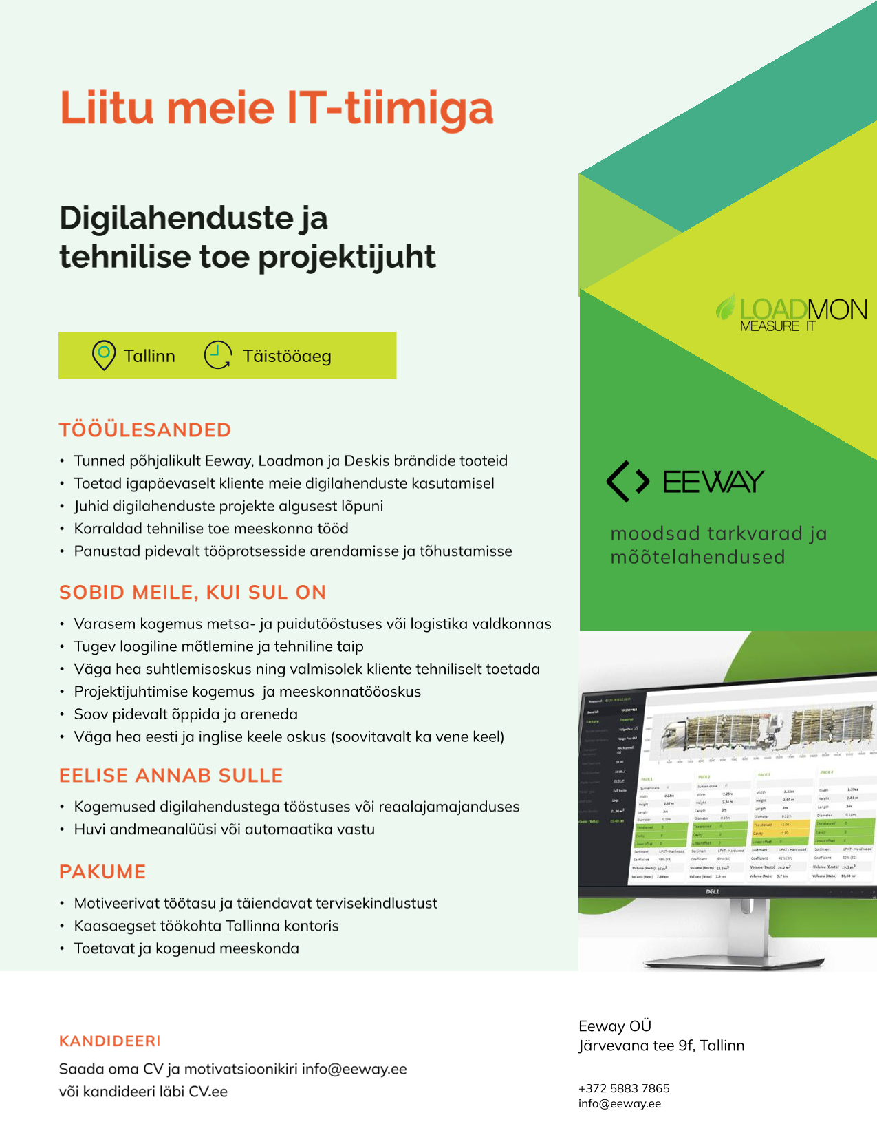 Meie tooteportfelli kuuluvad uuenduslikud digiväravad Loadmon ja e-veoselehe teenused, mis toetavad tööstuse digitaliseerimist ning automatiseerimist. Lisaks arendame pikaajalise kogemuse põhjal metsade majandamist ja puidulogistikat toetavaid tarkvaralahendusi.