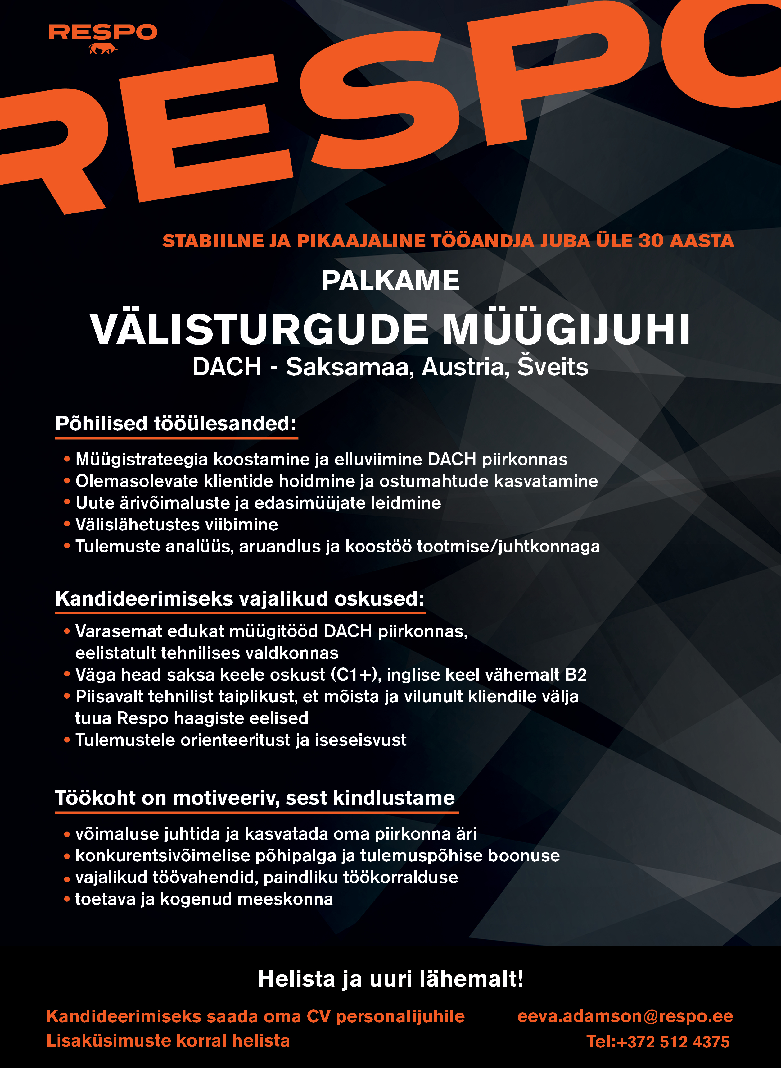 - Varasem edukas müügitöö DACH piirkonnas - eelistatult tehnilises valdkonnas