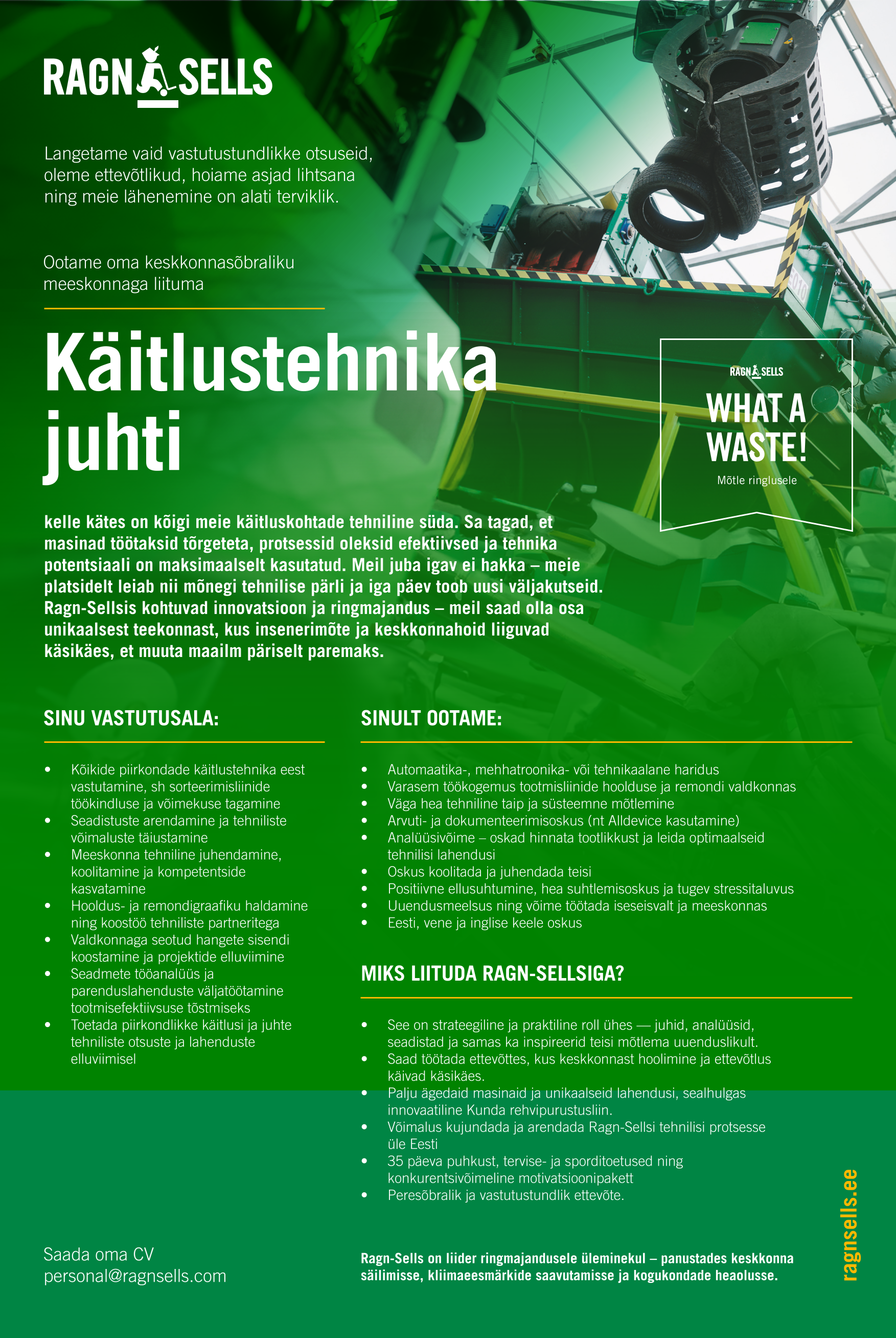 Ragn-Sells on liider ringmajandusele üleminekul panustades keskkonna säilimisse, kliimaeesmärkide saavutamisse ja kogukondade heaolusse.