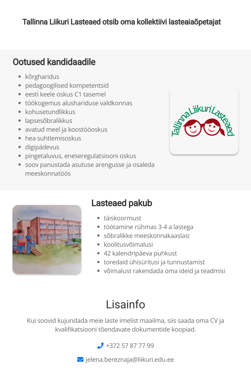 Selle ametikoha keskmise palga info leiad aadressilt palgad.ee.