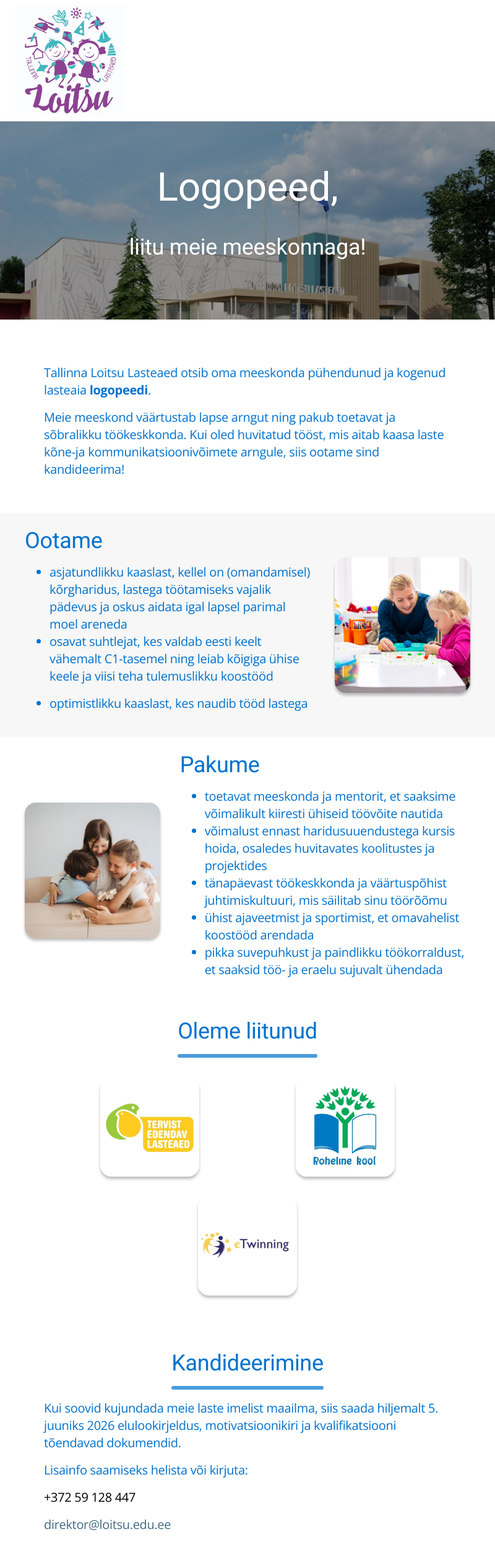 Lisahüved: Pakume pikka puhkust 56 päeva ning enestäiendamise võimalusi.