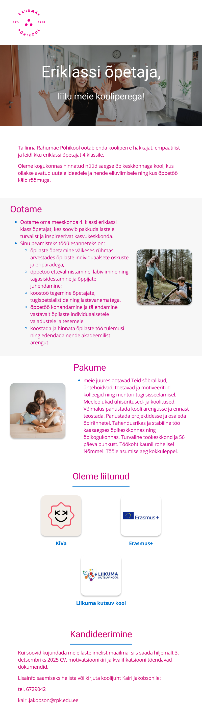 Rahumäe kool on tugevate traditsioonidega kogukonnakool, mis soovib kasvatada teadlikku õppijat - teda erinevate õpikogemuste kaudu toetades ning kaasaegse õpikäsituse rütmis käies.
