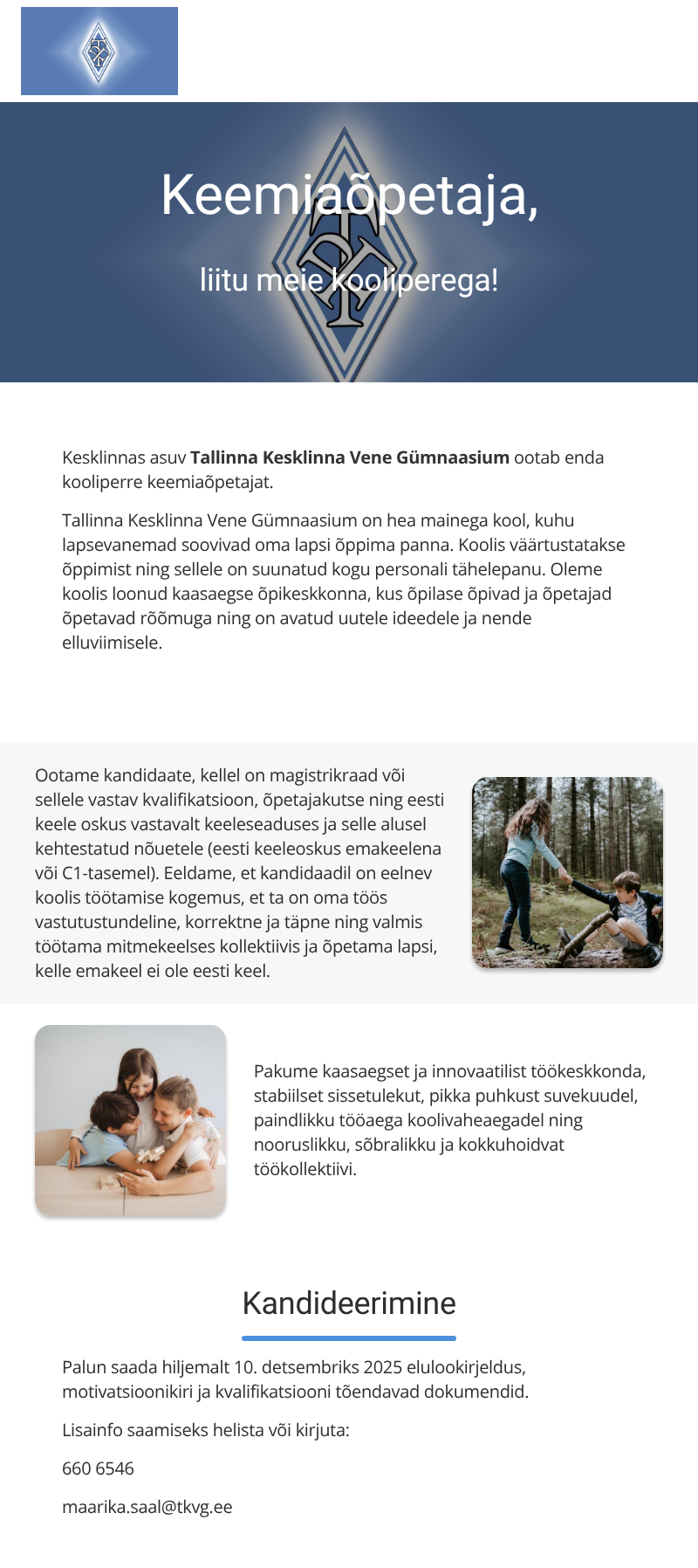 Tallinna Kesklinna Vene Gümnaasium on hea mainega kool, kuhu lapsevanemad soovivad oma lapsi õppima panna. Koolis väärtustatakse õppimist ning sellele on suunatud kogu personali tähelepanu. Oleme koolis loonud kaasaegse õpikeskkonna, kus õpilase õpivad ja õpetajad õpetavad rõõmuga ning on avatud uutele ideedele ja nende elluviimisele.