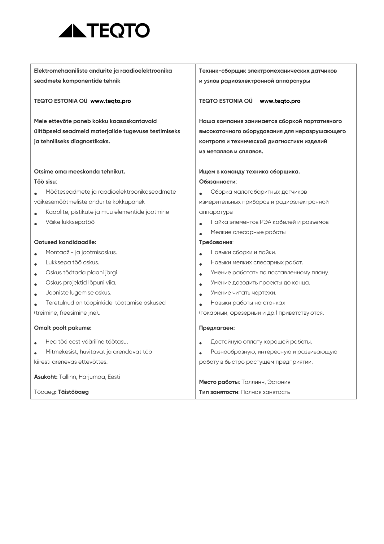 Sarnased töökuulutused: