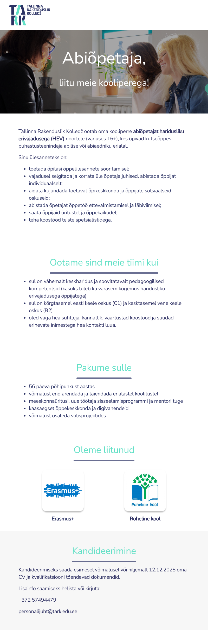 Tallinna Humanitaargümnaasiumi õpetaja abi