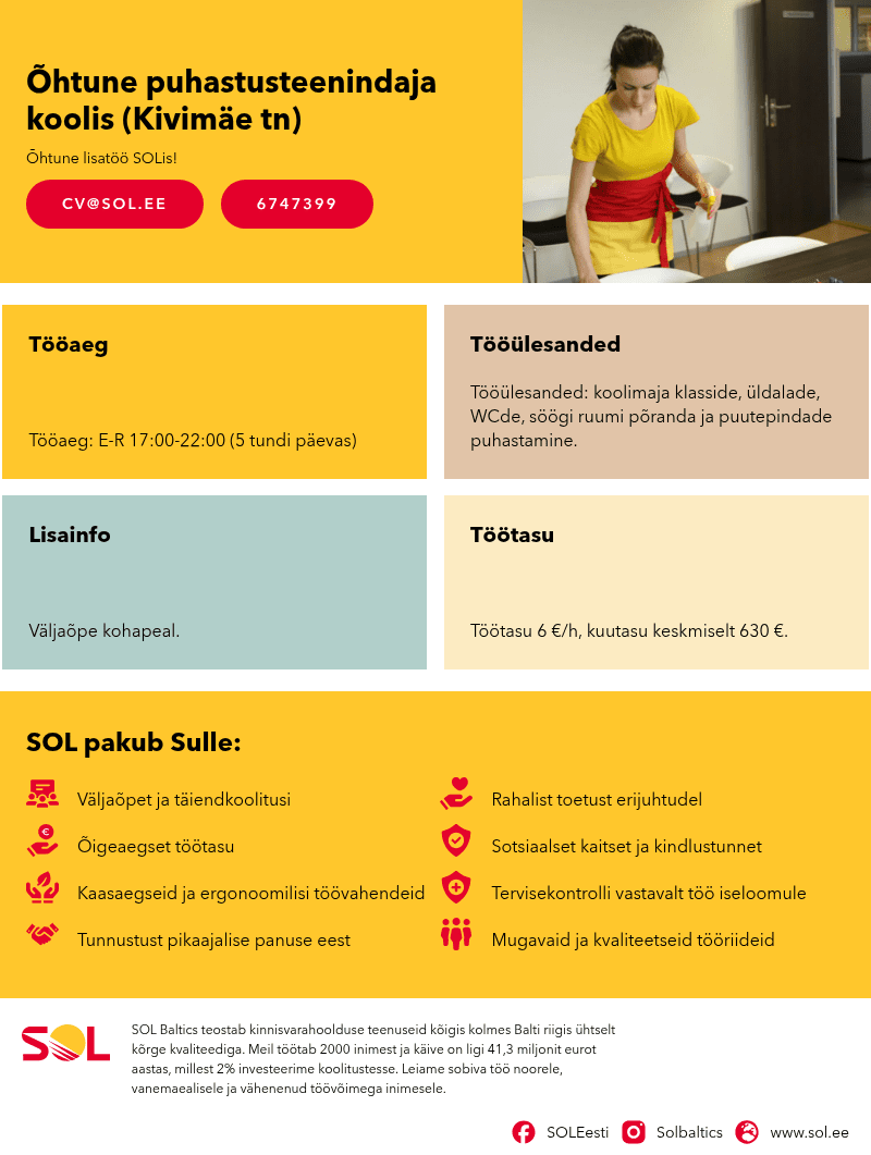 SOL Baltics teostab kinnisvarahoolduse teenuseid kõigis kolmes Balti riigis ühtselt kõrge kvaliteediga.