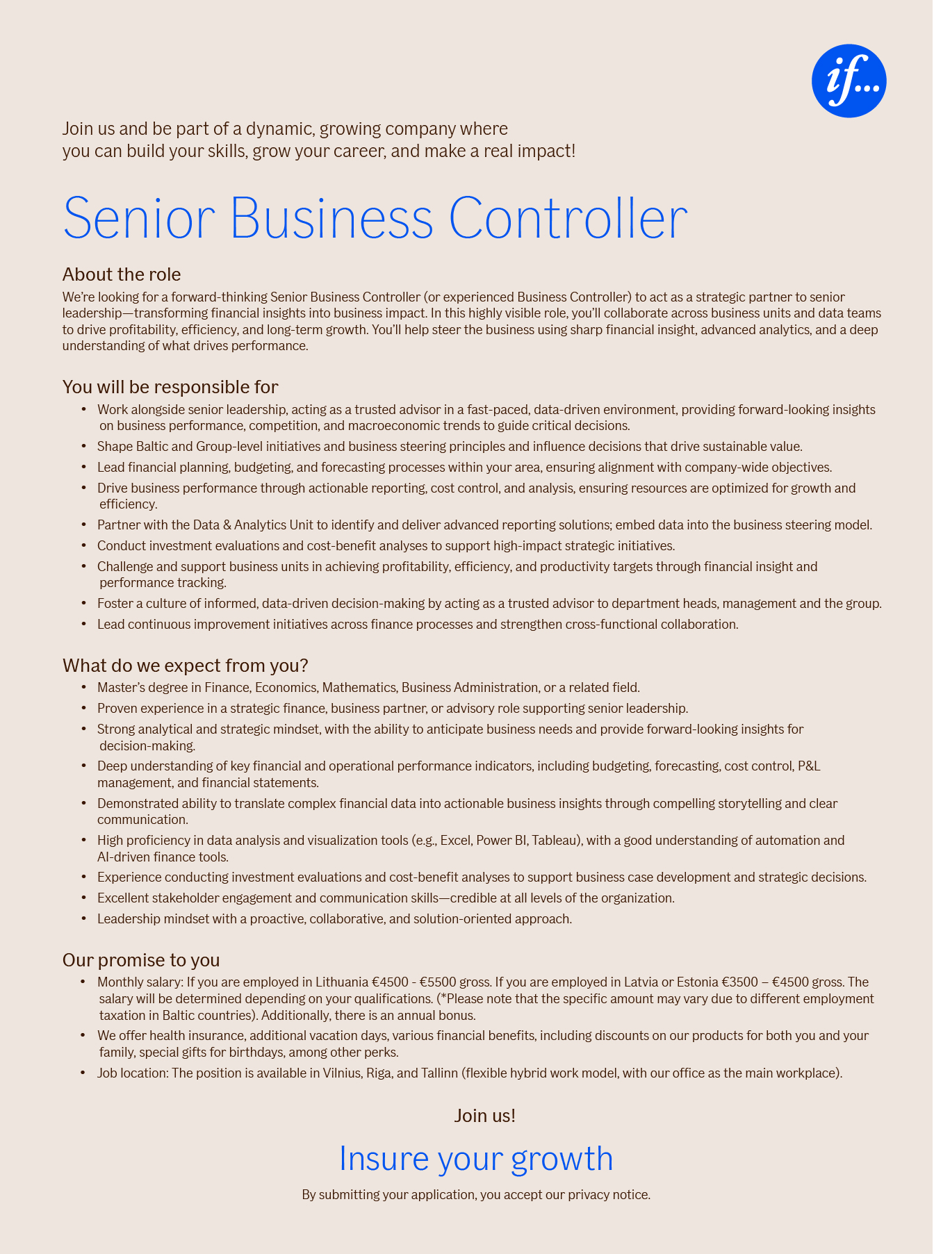 Lisahüved: Read more about our employee benefits (in Estonian) https://www.if.ee/ifist/tootamine-ifis/elu-ifis/tootaja-soodustused